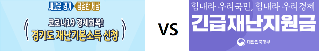 | 중앙정부 (긴급재난지원금) | 경기도 (재난지원소득) | 비고 | |