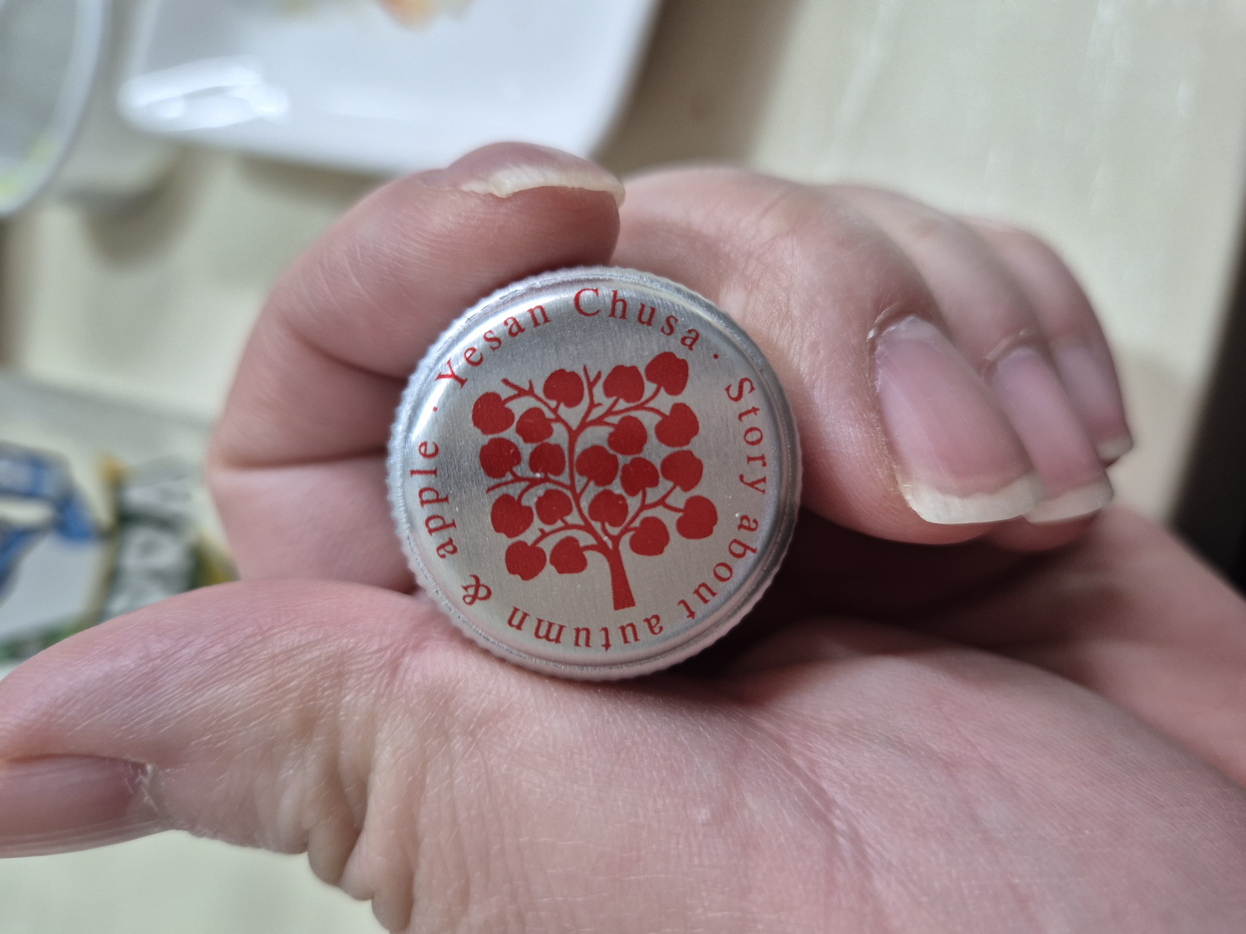 술병의 캡에도 사과나무가 예쁘게 그려져 있었습니다.
