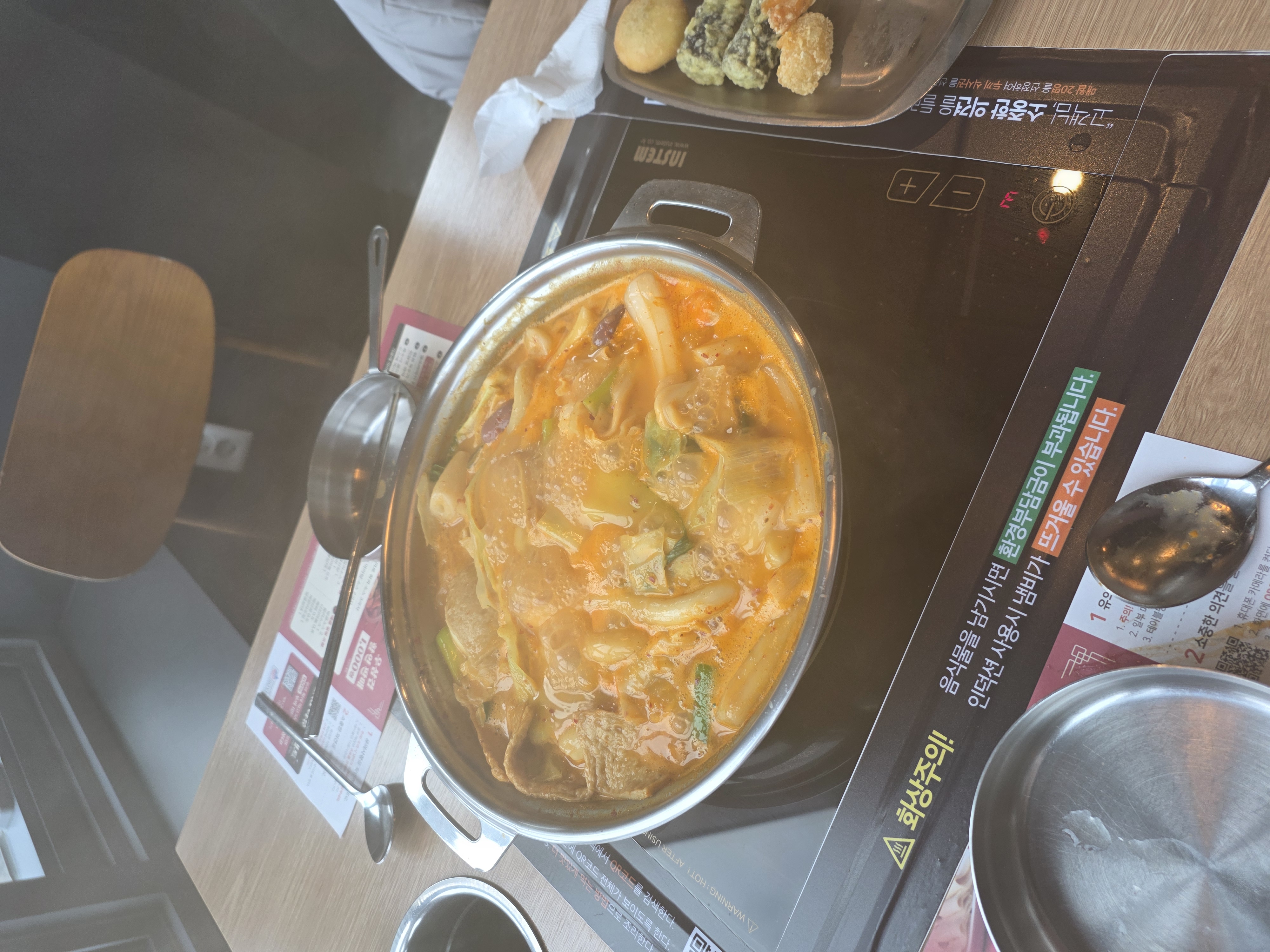 냄비에 먼저 육수를 넣고 내가 먹을 떡과 야채를 챙겨 가지고 오세요.