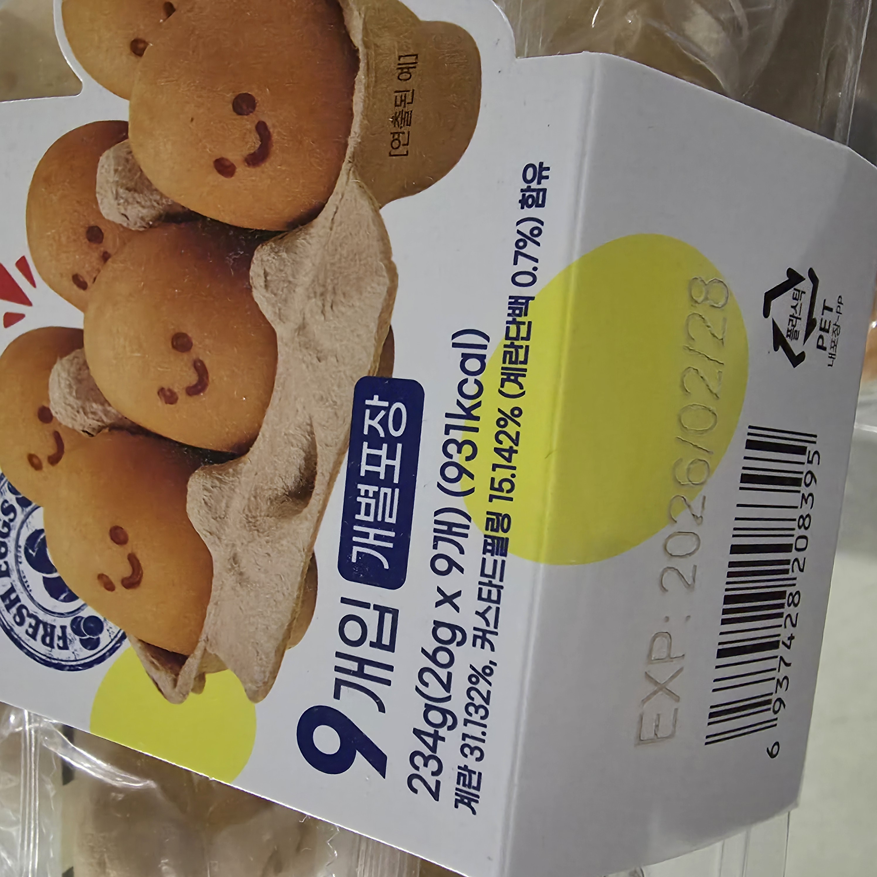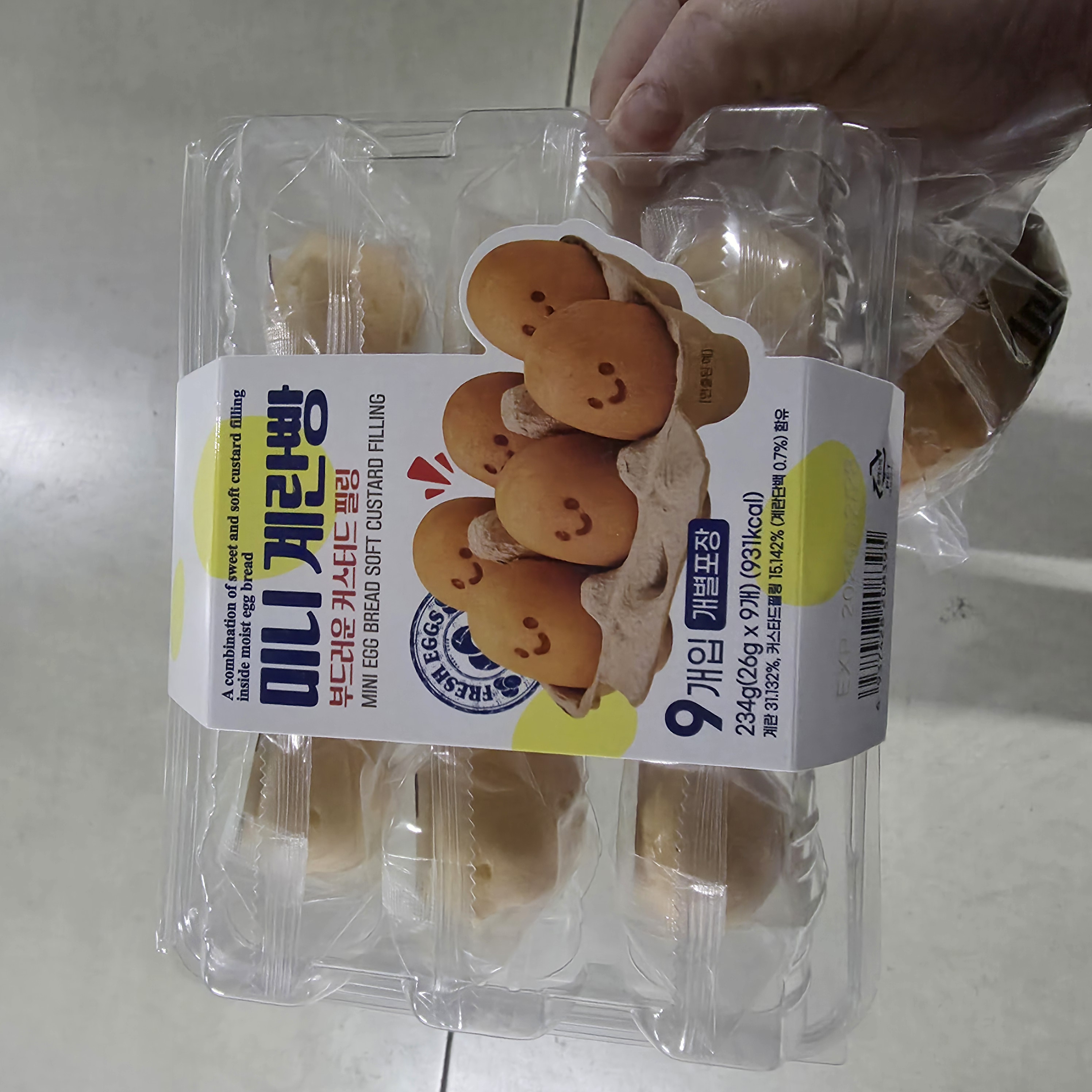 계란 모양의 빵이 개별 포장돼서 계란판 안에 들어간 빵 같은 느낌이었어요.