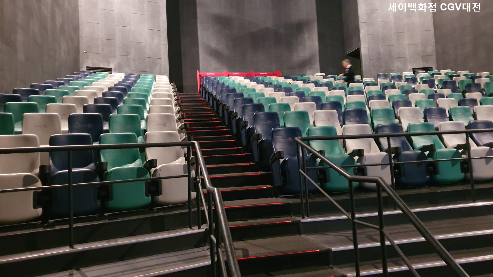 대전CGV가 예전에는 빨간색 헝검 패브릭소재의 의자였는데~