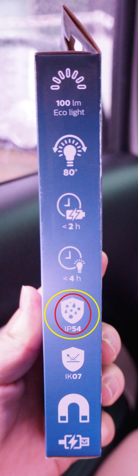 최근에 구매했던 작업용랜턴 필립스 PEN20S LED랜턴도 역시 IP등급이 적혀있다.