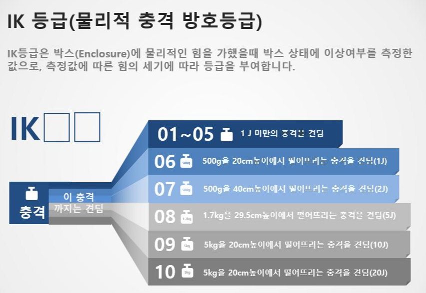 IK07이면 500g의 물체를 40cm높이에서 떨어트리는 충격을 견디는 등급입니다.