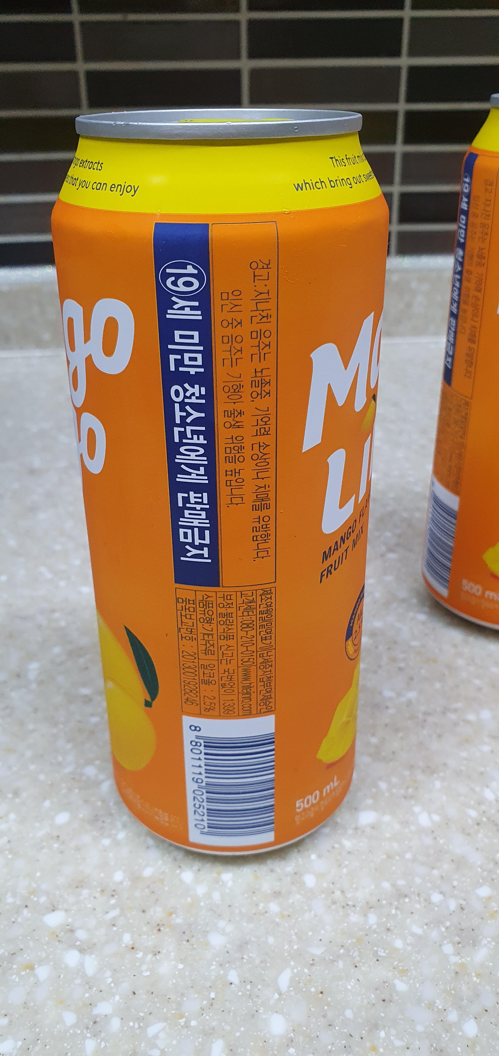 아무리 알콜 함량이 2.5 프로만 들었어도 이건 음료가 아닙니다! 망고링고는 19세미만을 마실수 구매할수 없습니다.