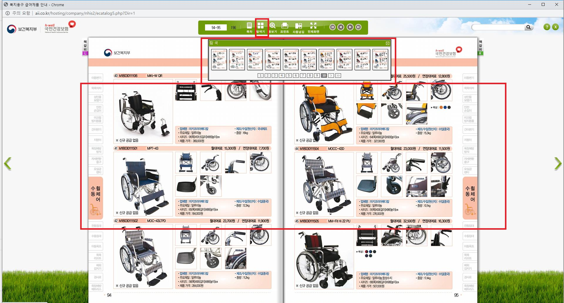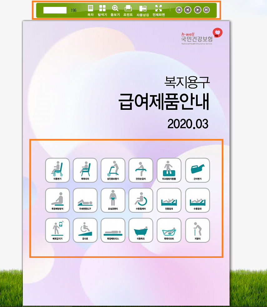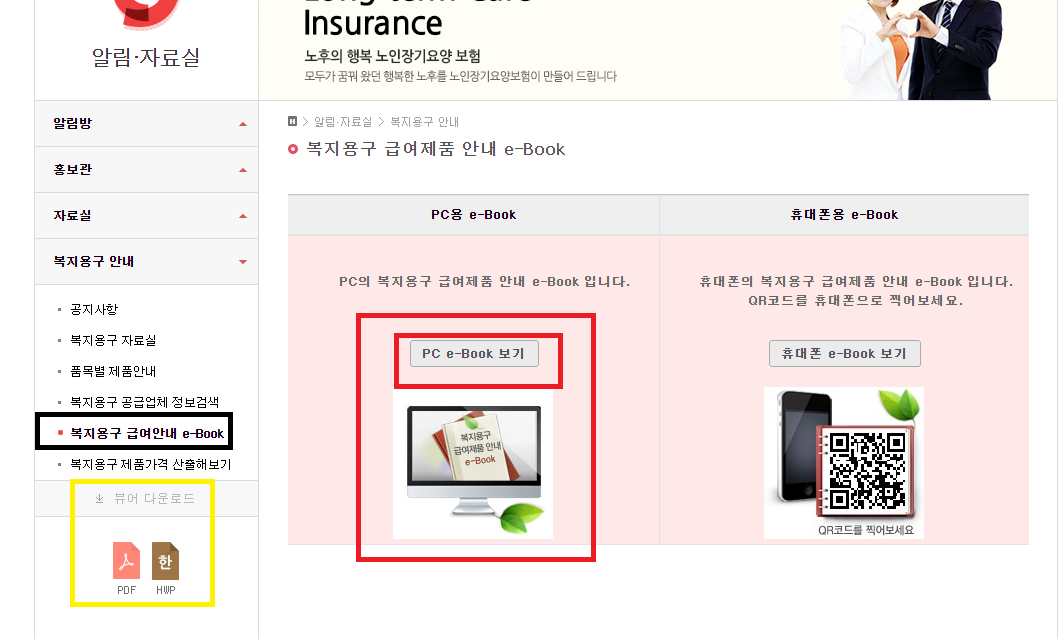 아래 "복지용구급여안내 E-book을 클릭 해보시면
