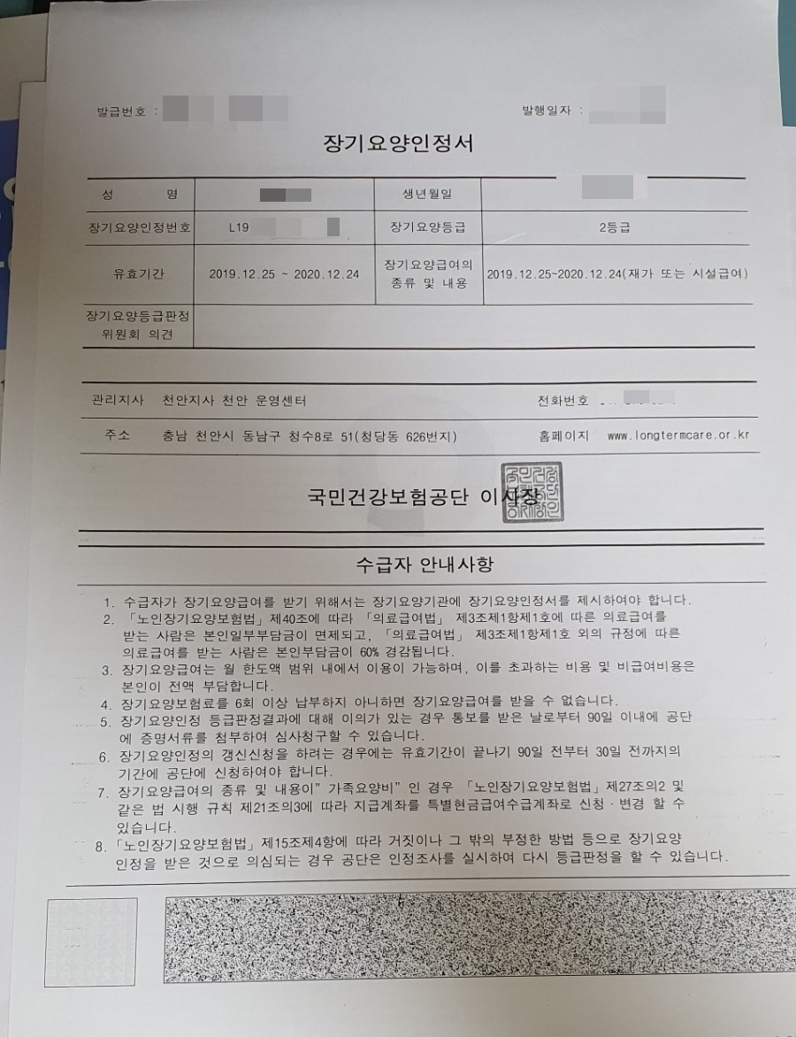 장기요양인정서를 보면