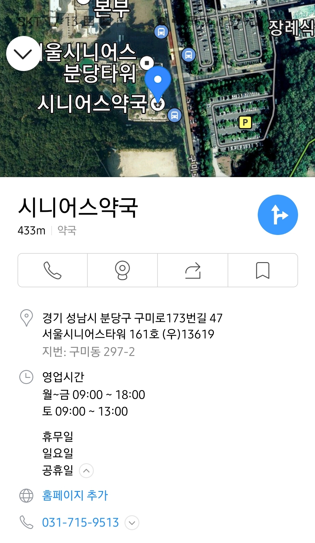 두군데 모두 같은 건물 시니어스빌딩 1층에 위치하고 있는 약국이다.