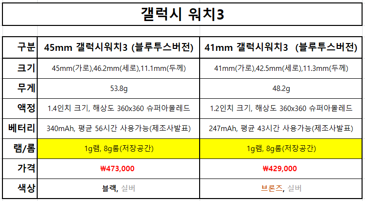 이상으로 갤럭시 워치3 스펙 비교 포스팅 마칩니다.