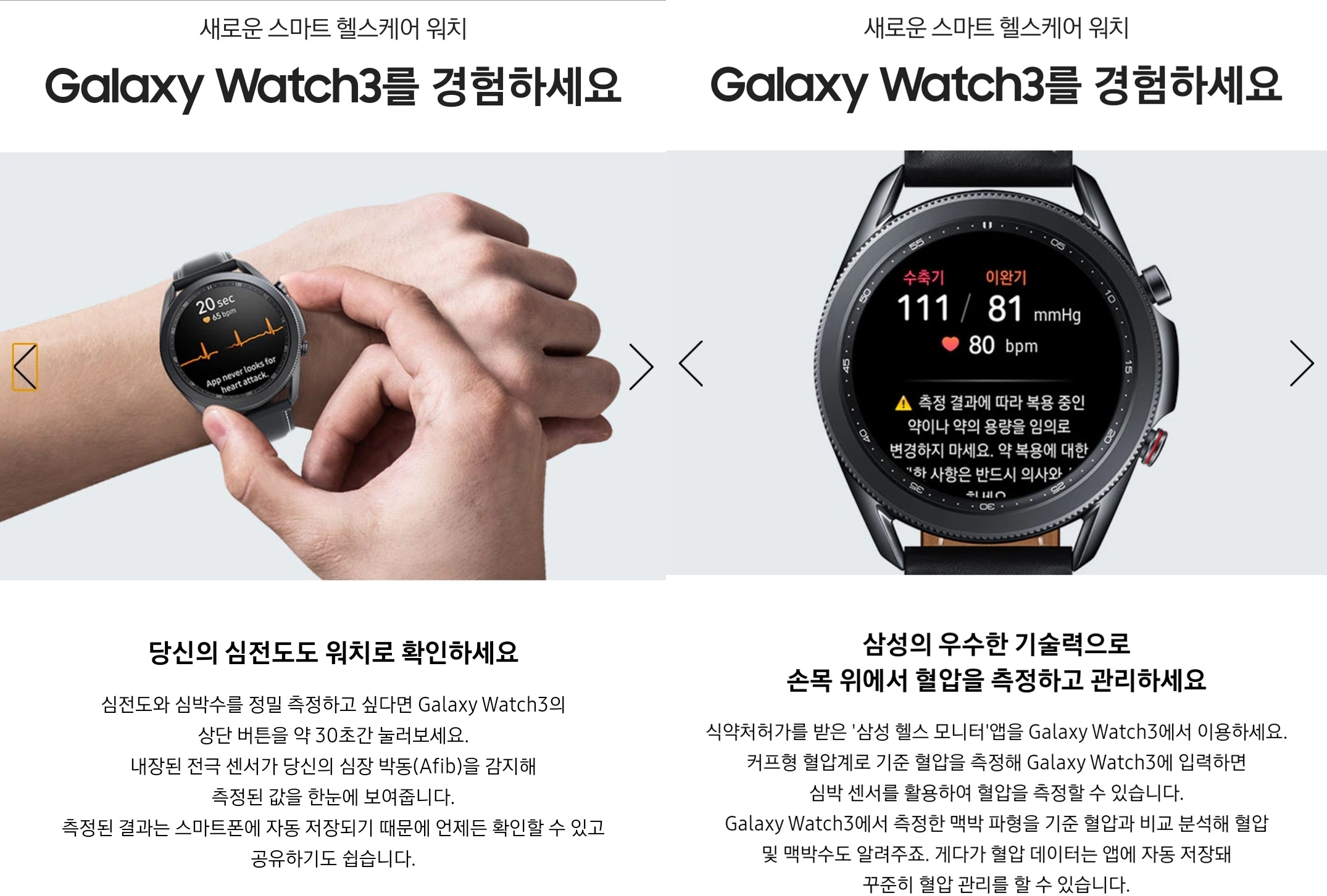 이번 갤럭시 워치3가 강조하는 기능은 헬스 케어 입니다.