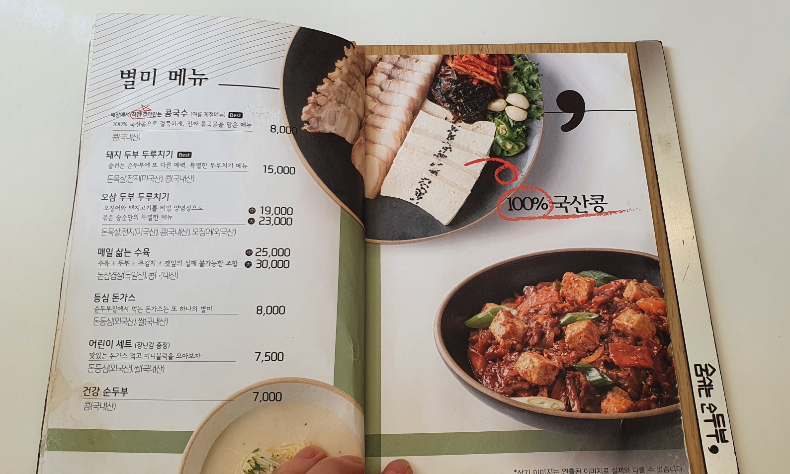 여긴 좋은게.. 100퍼센트 국산콩으로 직접 두부를 만들어서 좋거든요!