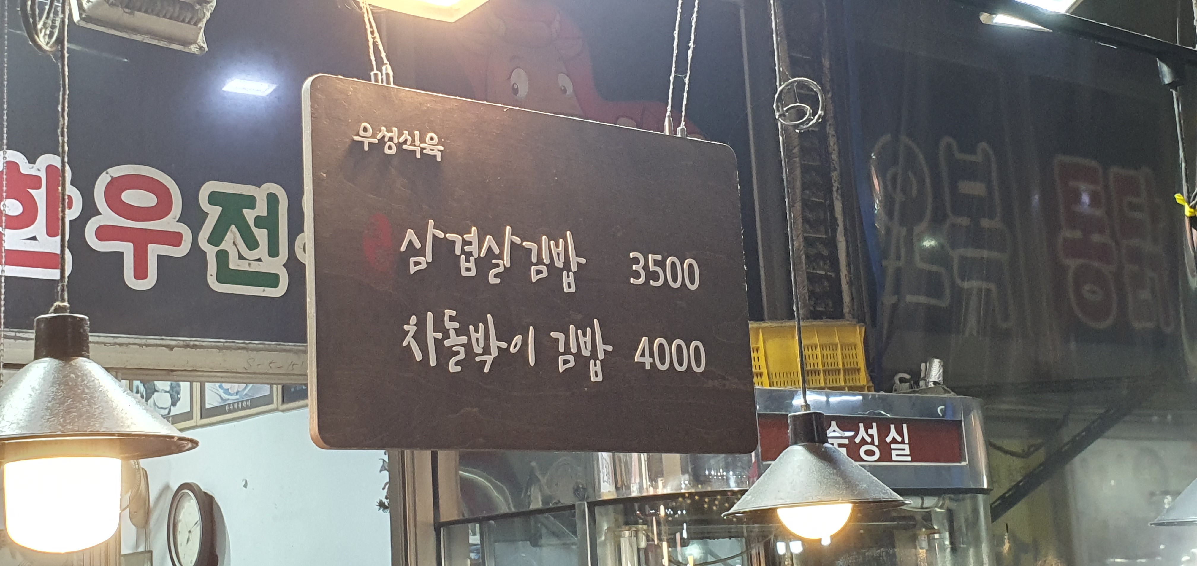 우선 깡통시장 삼겹살김밥 메뉴판입니다.