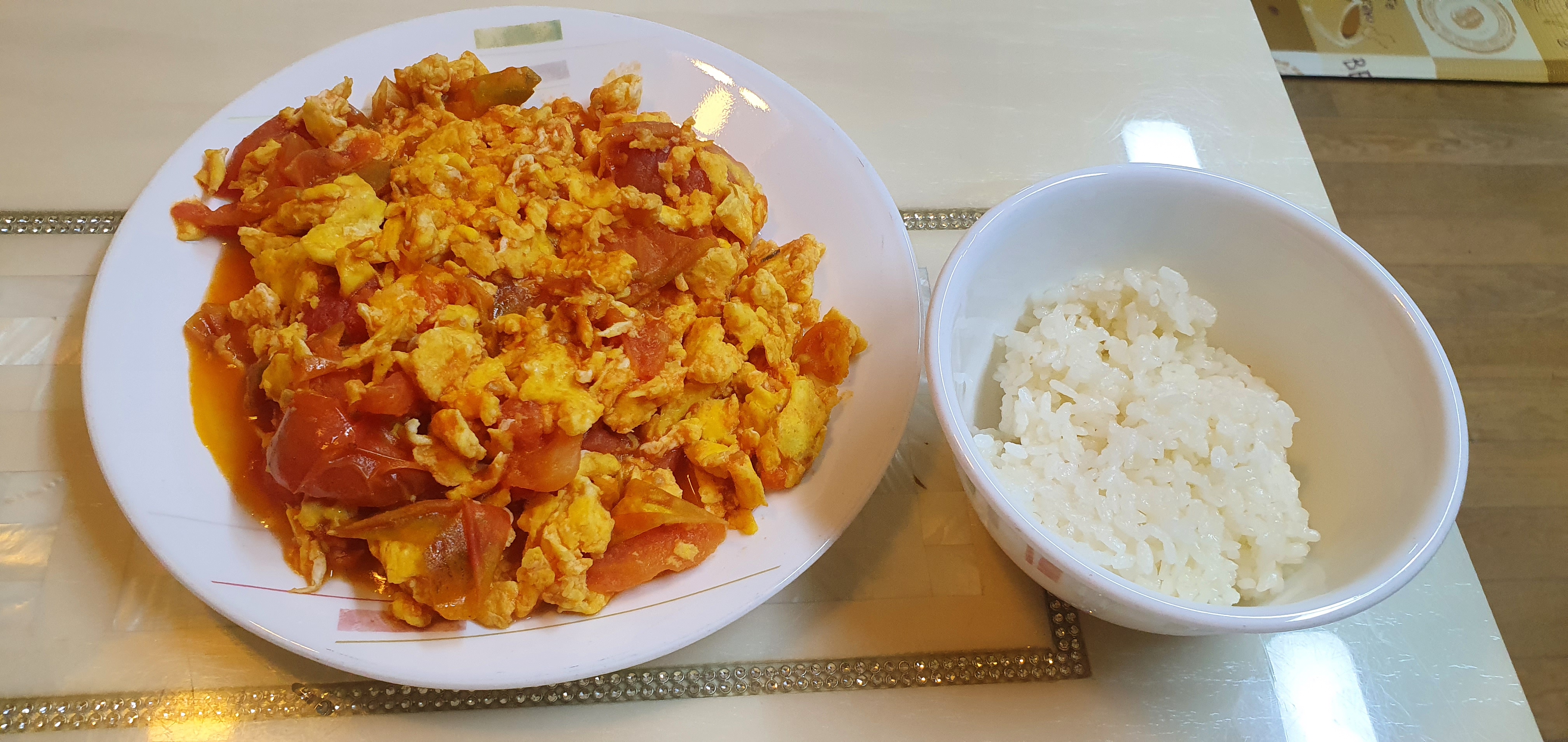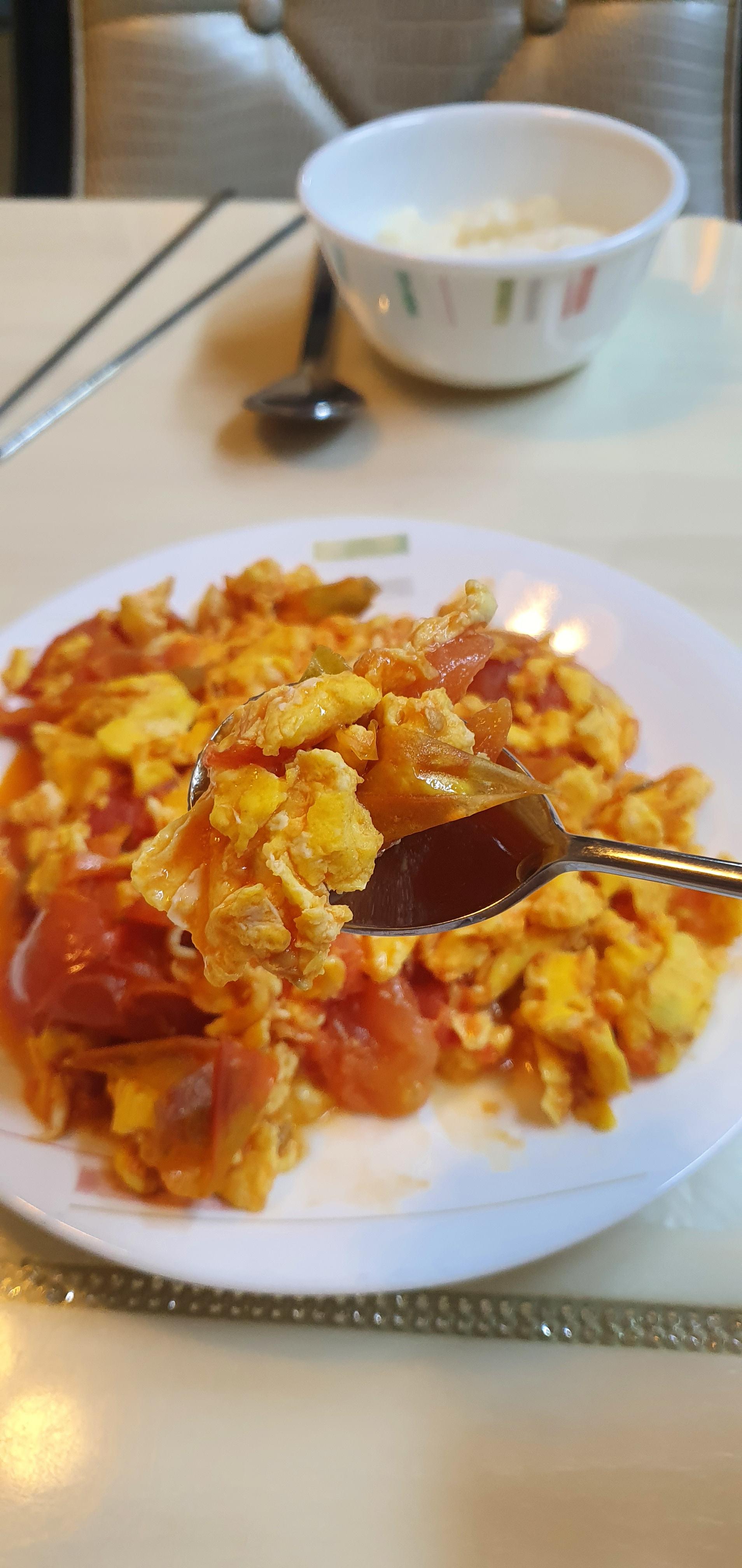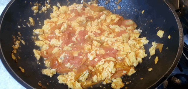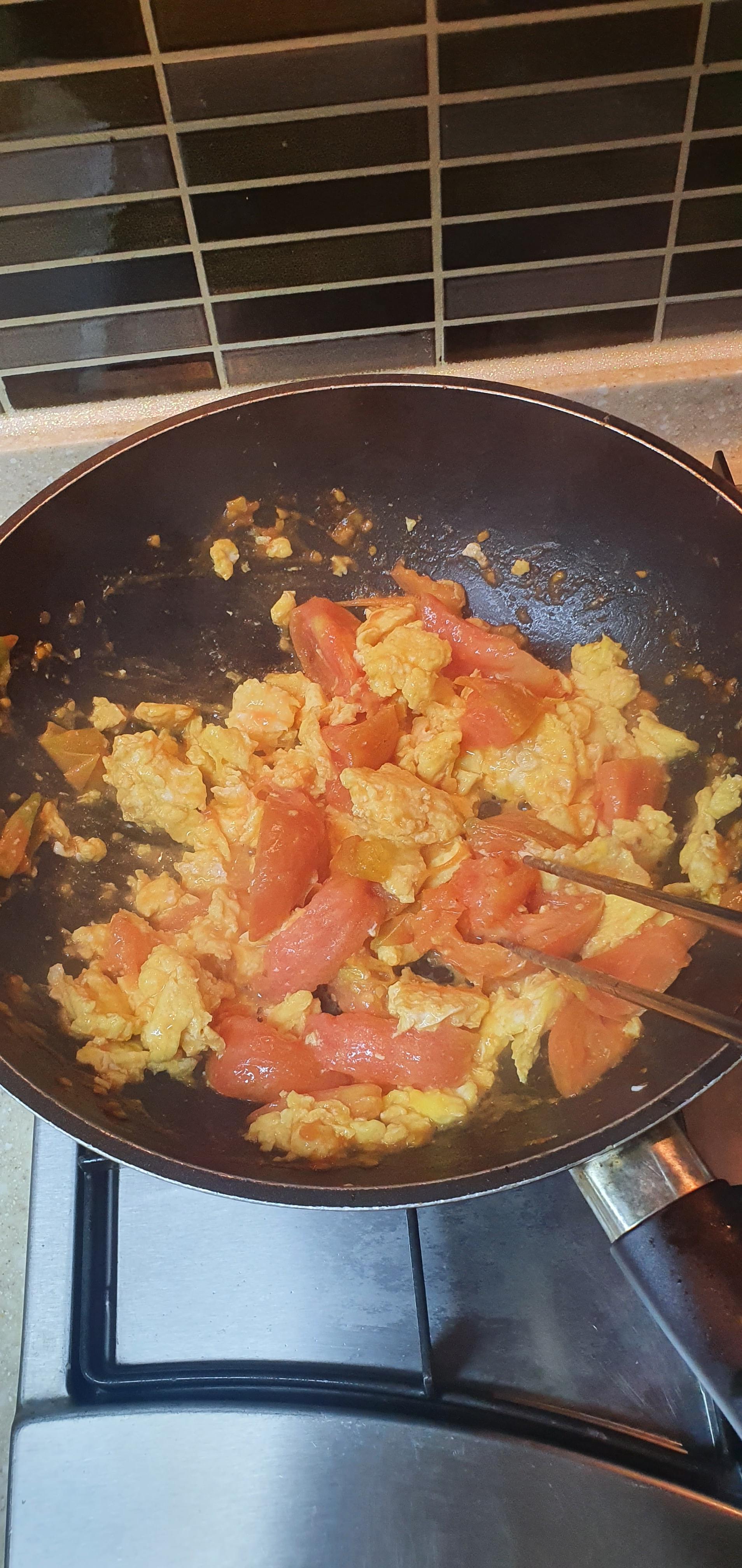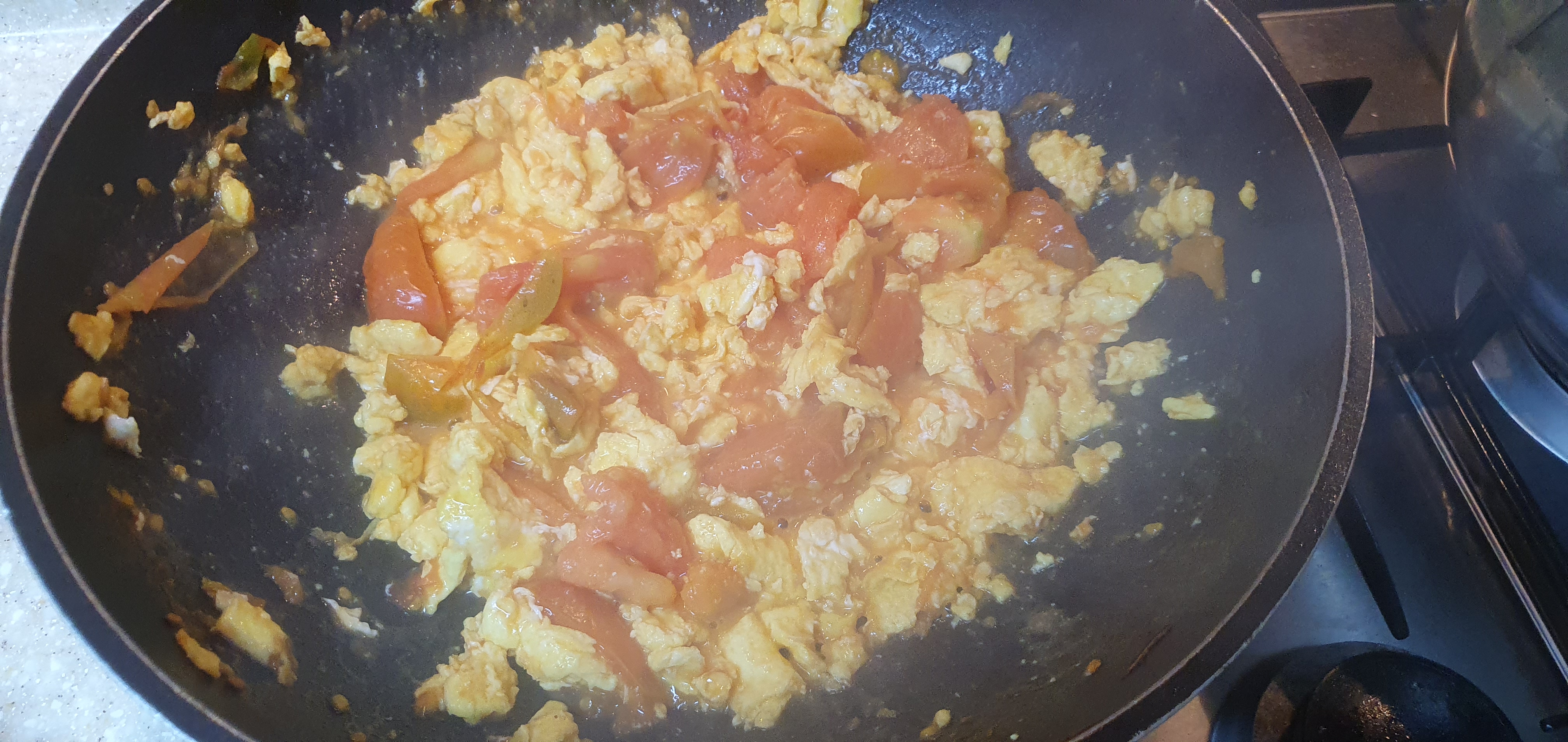 그냥 계랸넣어서 저으면서 한 80프로정도 대충익혀줌. (왜냐면 다시 토마토랑 같이 볶을꺼이기 때문!)