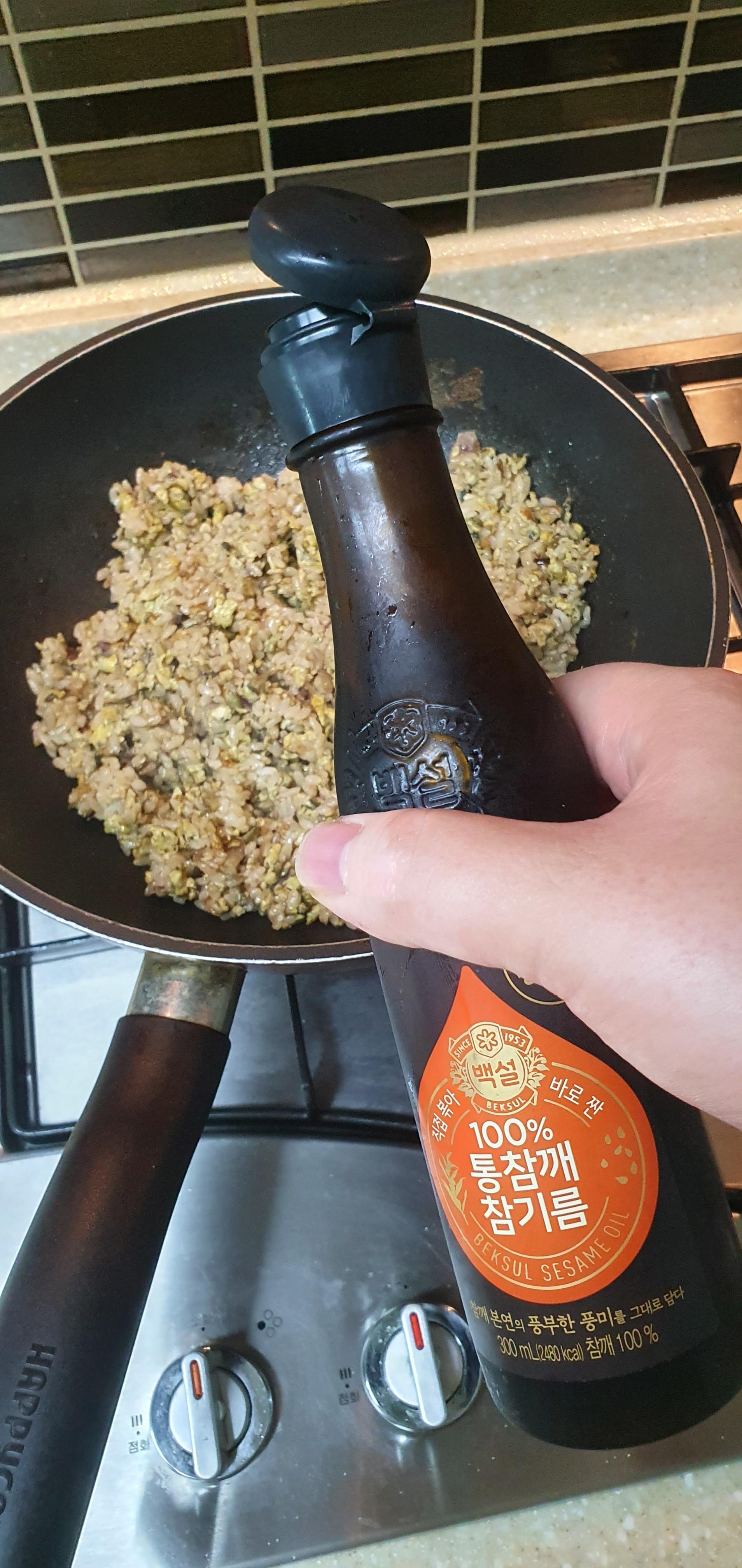 6. 참기름도 1티스푼정도 넣어줍니다. 더 고소하게~ 먹어야죠