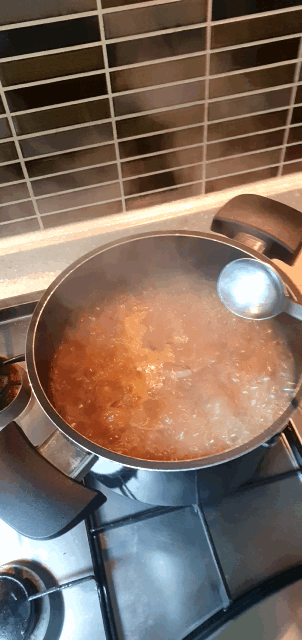 2. 순대가 준비가 끝나면 비비고 곰탕국물 한팩을 뜯고 냄비에 붓습니다. 그리고 물컵 으로 2번정도 총 400ml정도의 물을 추가로 붓습니다.