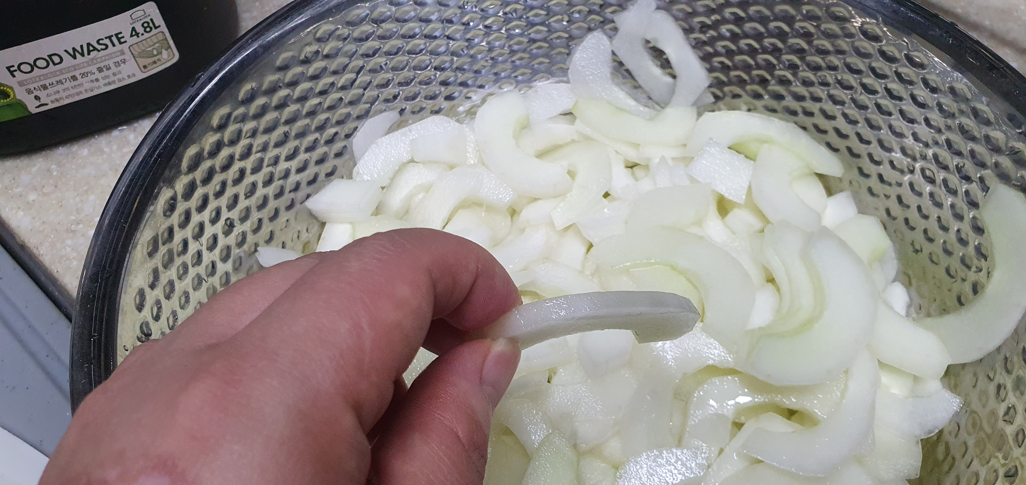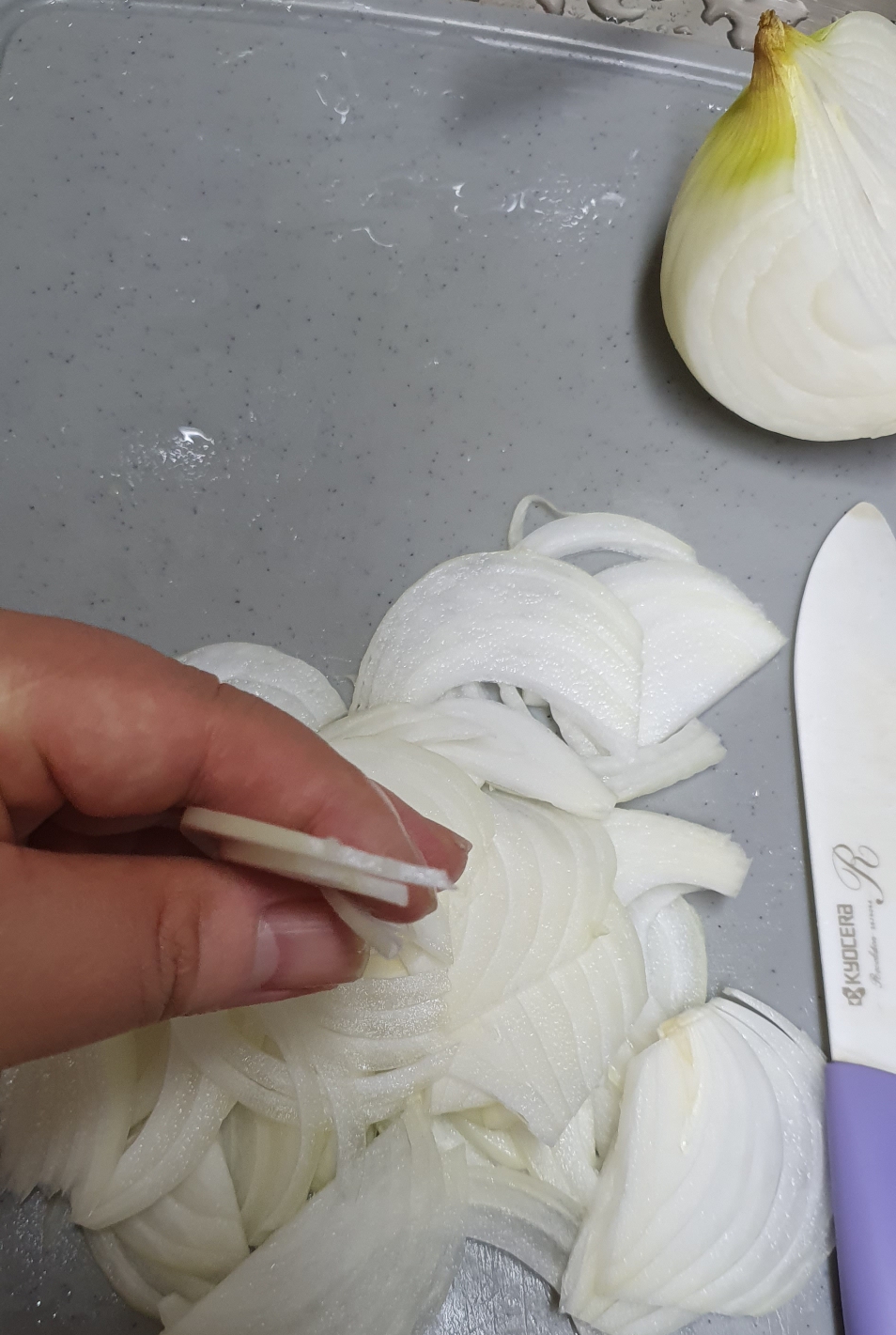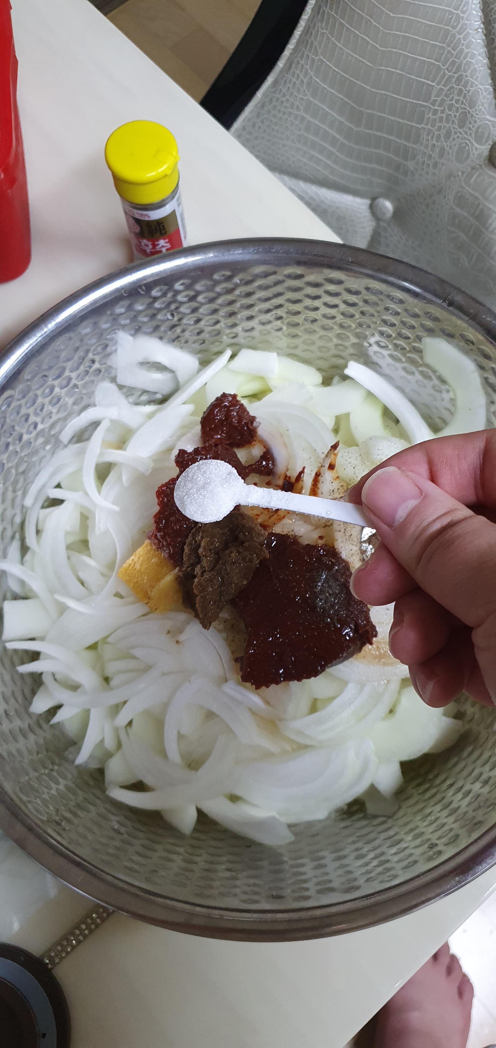 전 양파의 매운맛이 싫어서 얇게 썰었습니다.