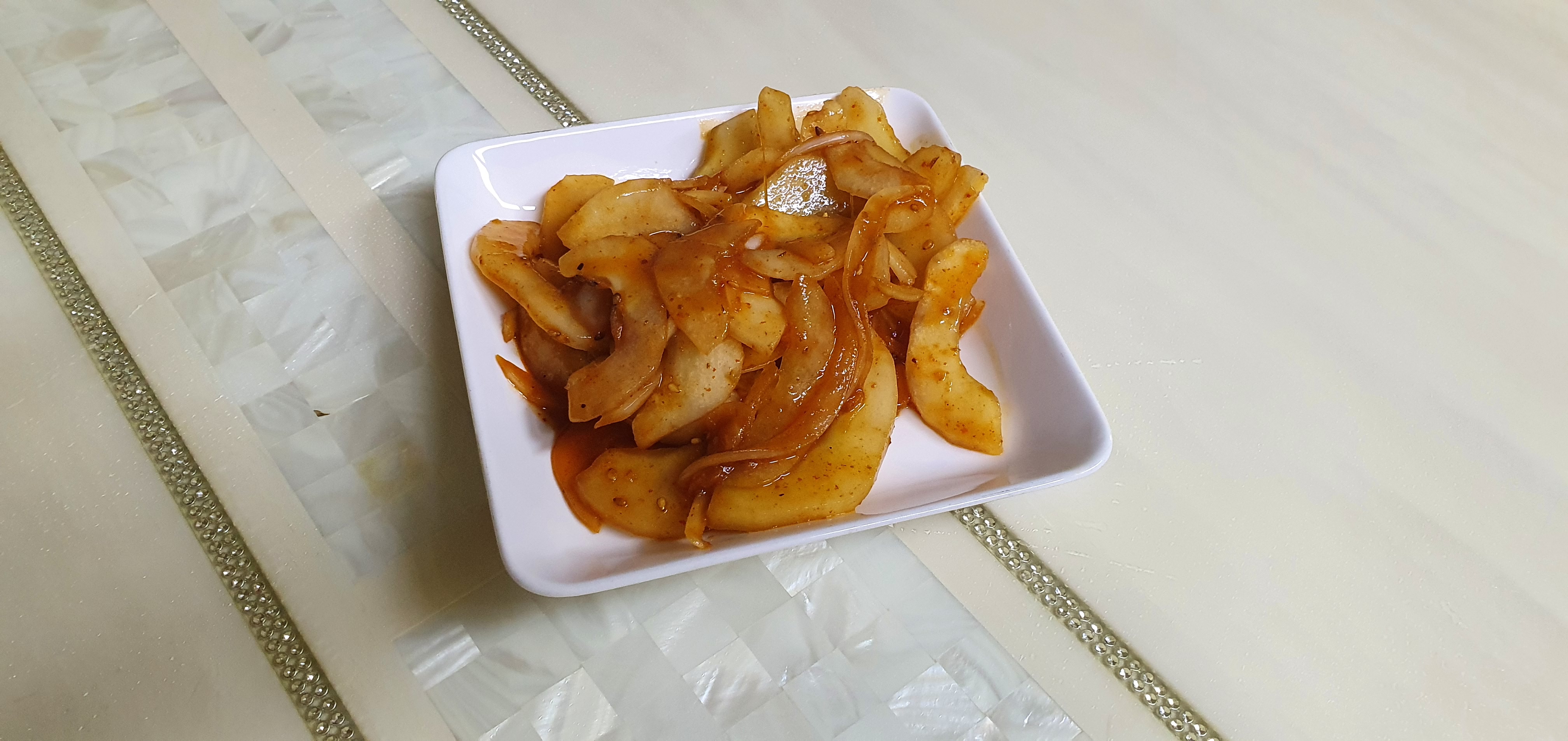 2. 식감에 따라 두껍께 또는 얇게 썰어요. 근데 이때 맛을 한번 보세요. 맵거나 쓰거나 안매운지? 먹어보아요!