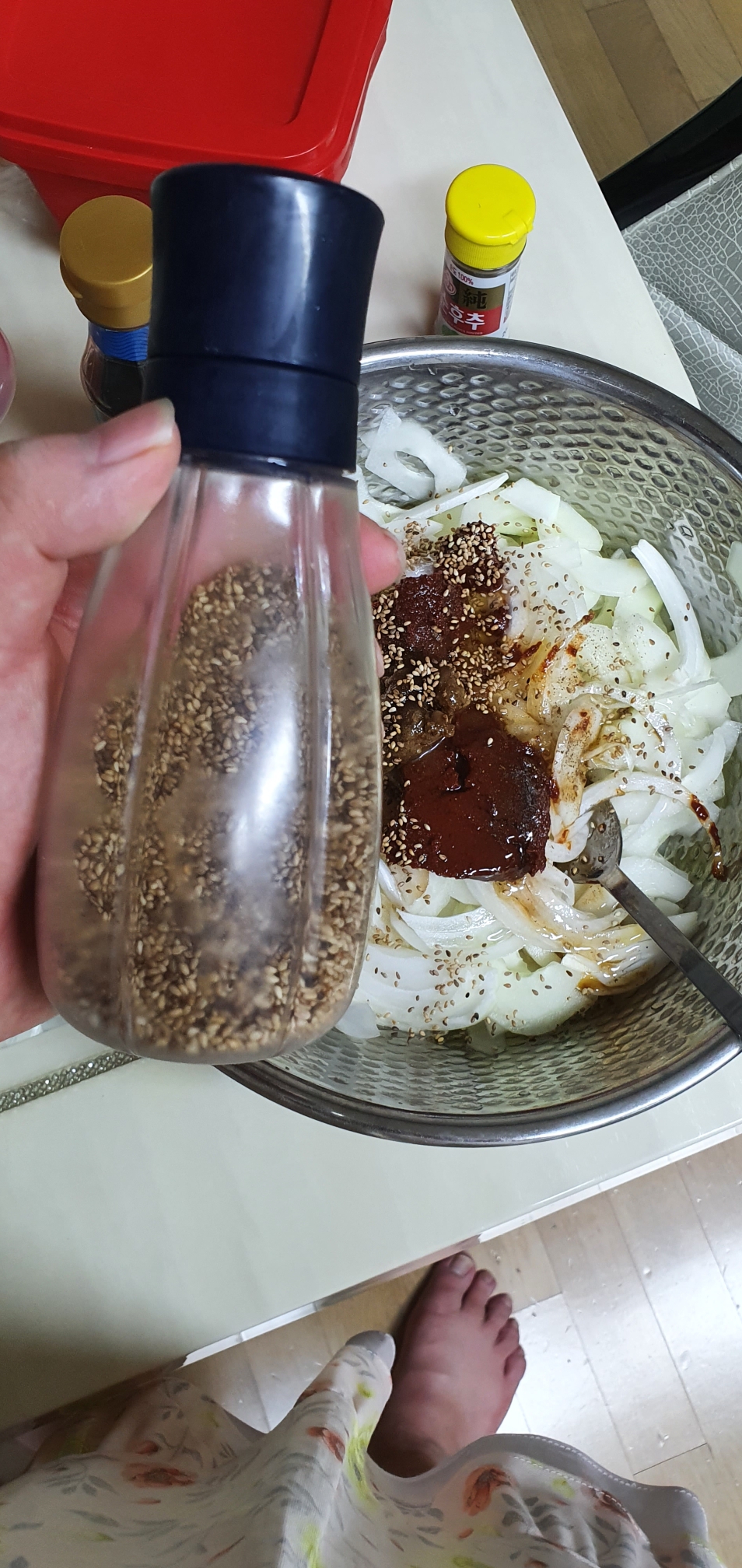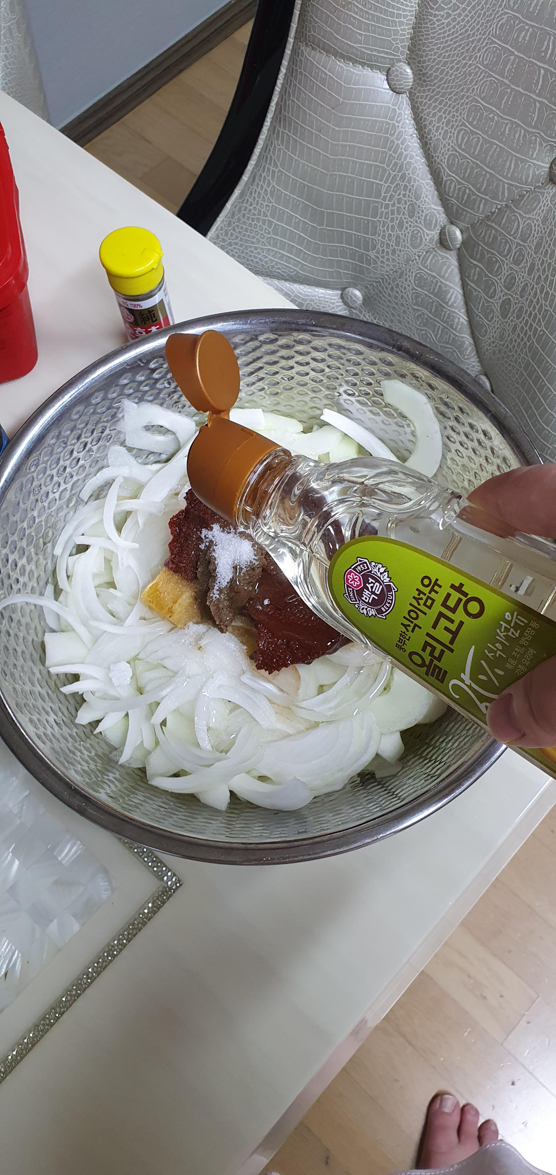 4. 이제 버무리면 됩니다. 순서는 아래 사진처럼 넣으면 됩니다.