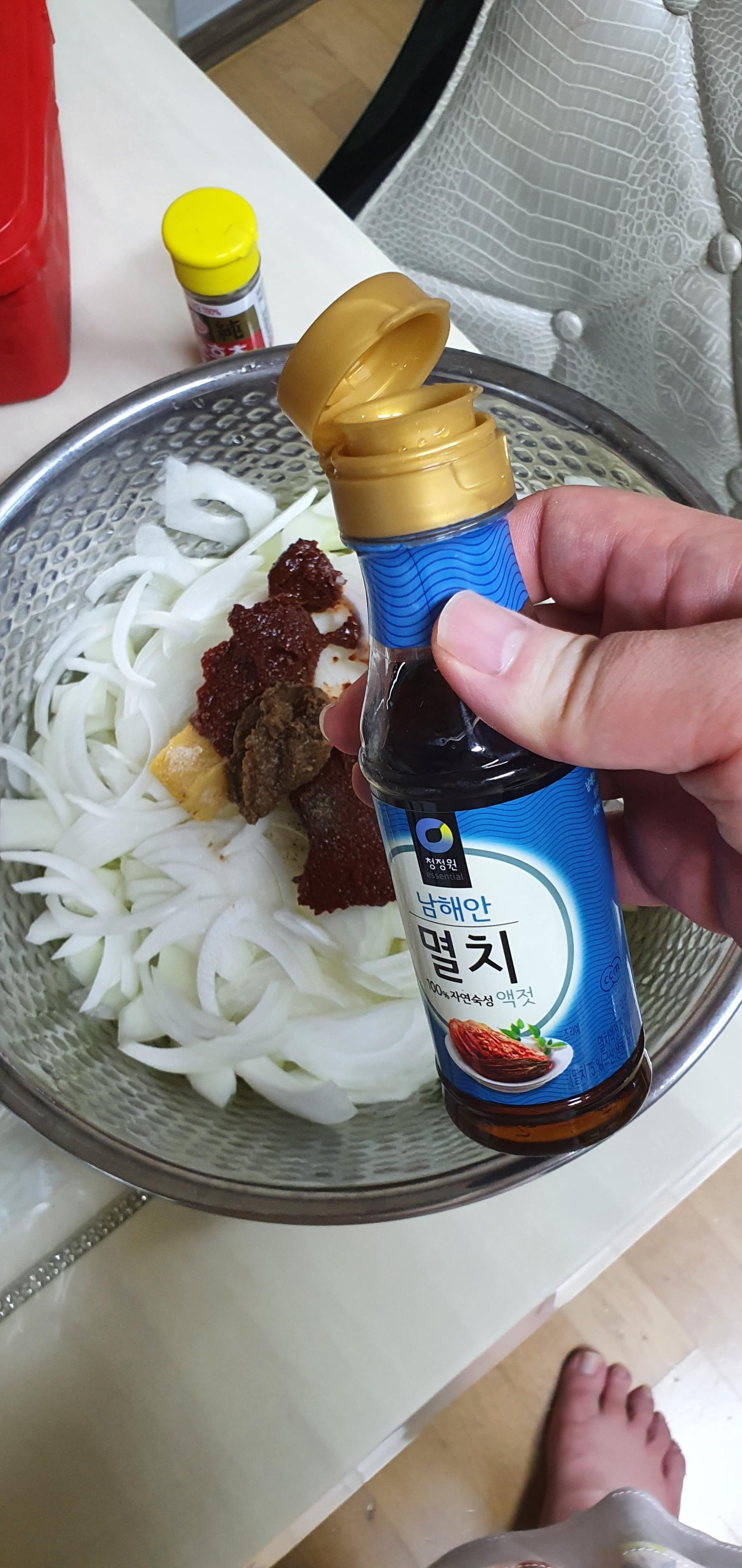 멸치액젓 1수저 또는 2수저 정도 넣습니다.