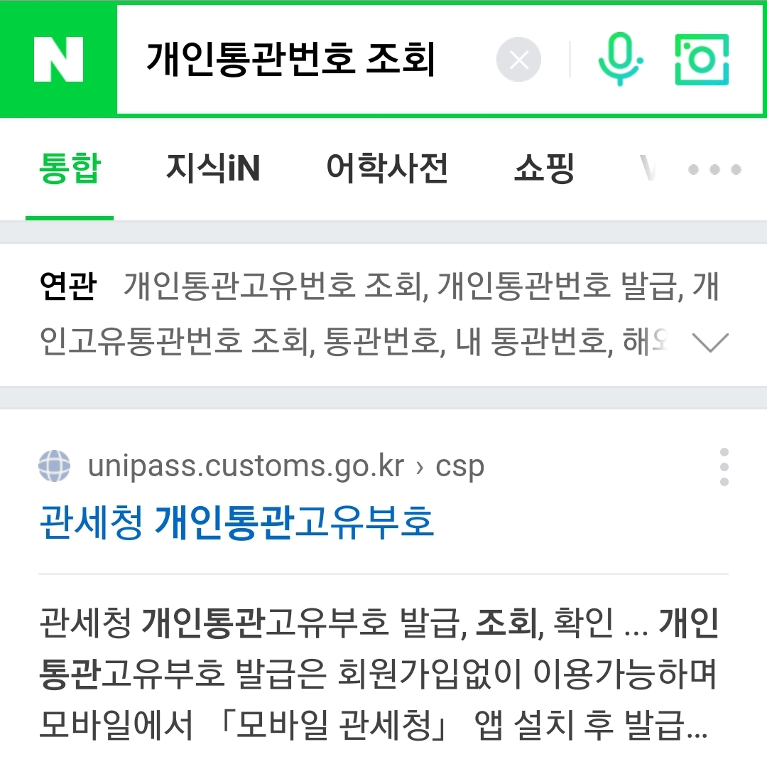 다음 또는 네이버에서 "개인통관번호 조회"라고 치고 검색을 누르면?