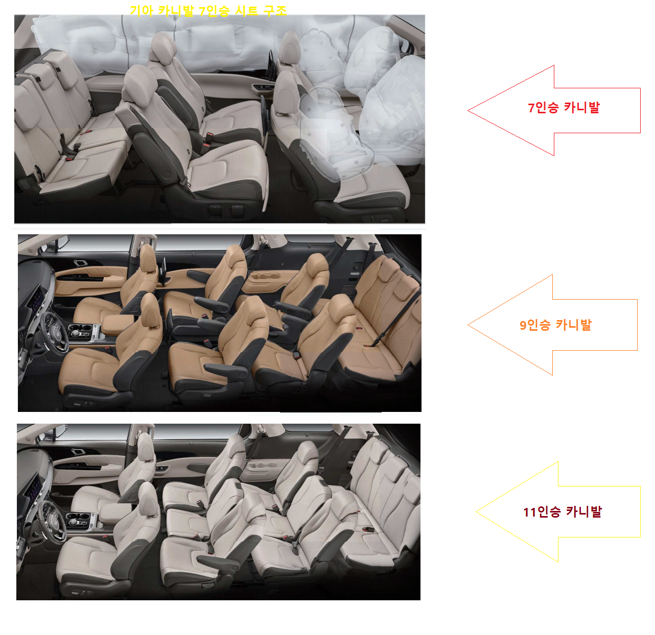 카니발은 다인승? 차량이기 때문에.. 7인, 9인, 11인승을 선택할수 있습니다.