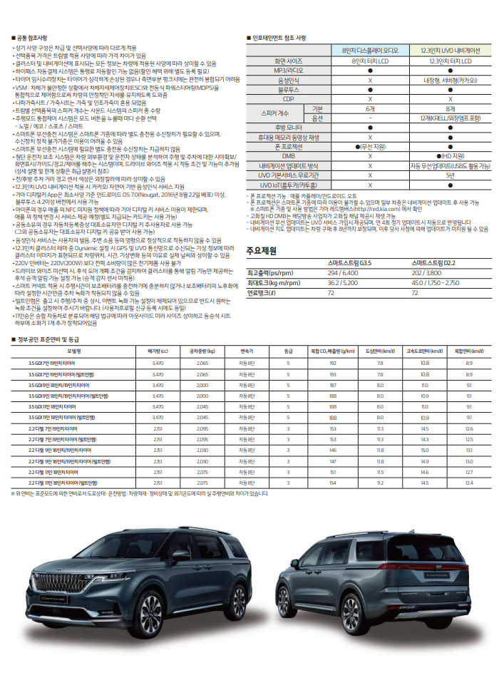 - 가성비1호 : 카니발 3.5리터 9인승 프레스티지 가솔린은 3160만원 / 복합 연비 9.1