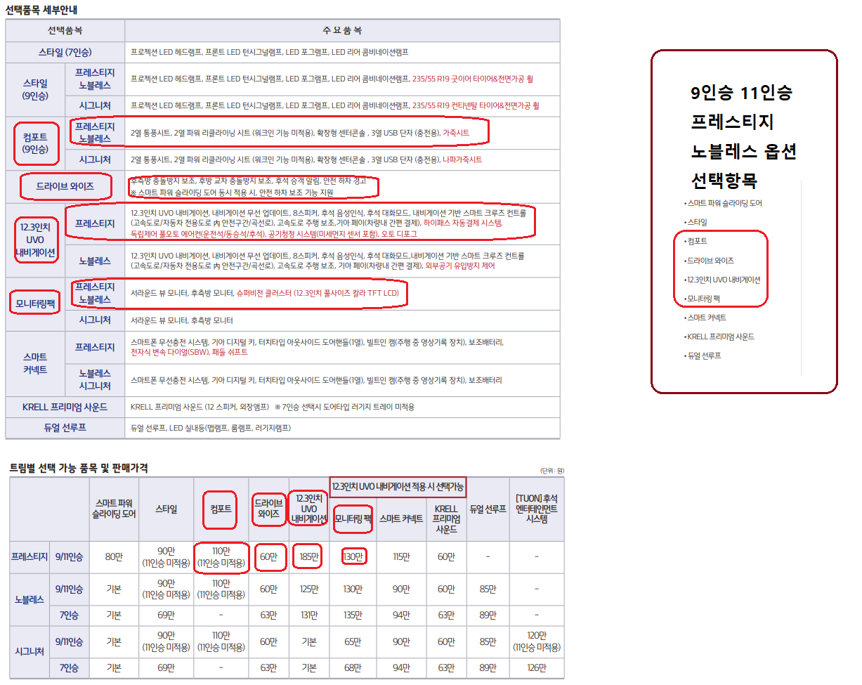 기본형 프레스티지 라인에도 7인승을 선택할수 있게 해줬으면 더 좋았을듯한데...