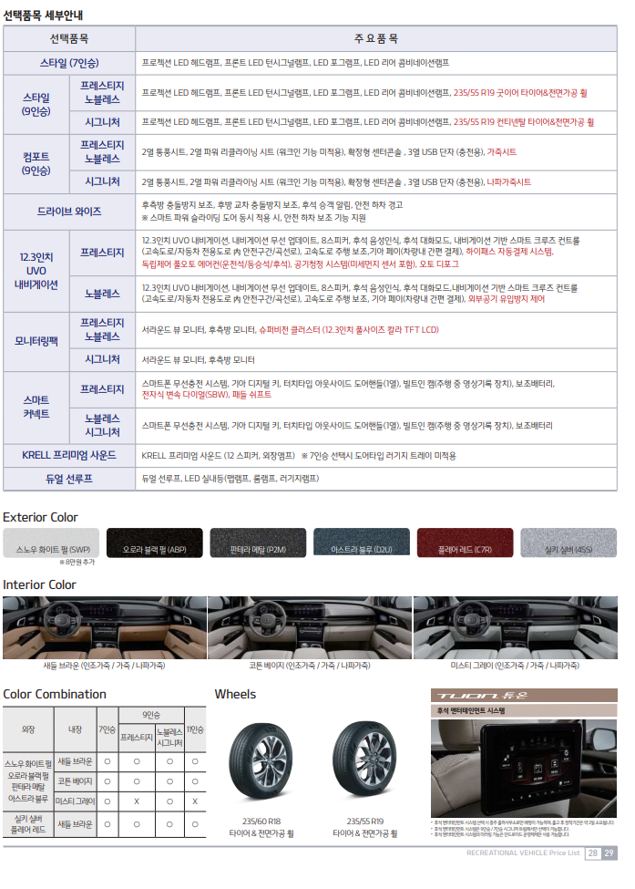 가성비 모델은 그나마 넉넉한 9인승 기본형으로 선택하는게 제일 나을듯보입니다.