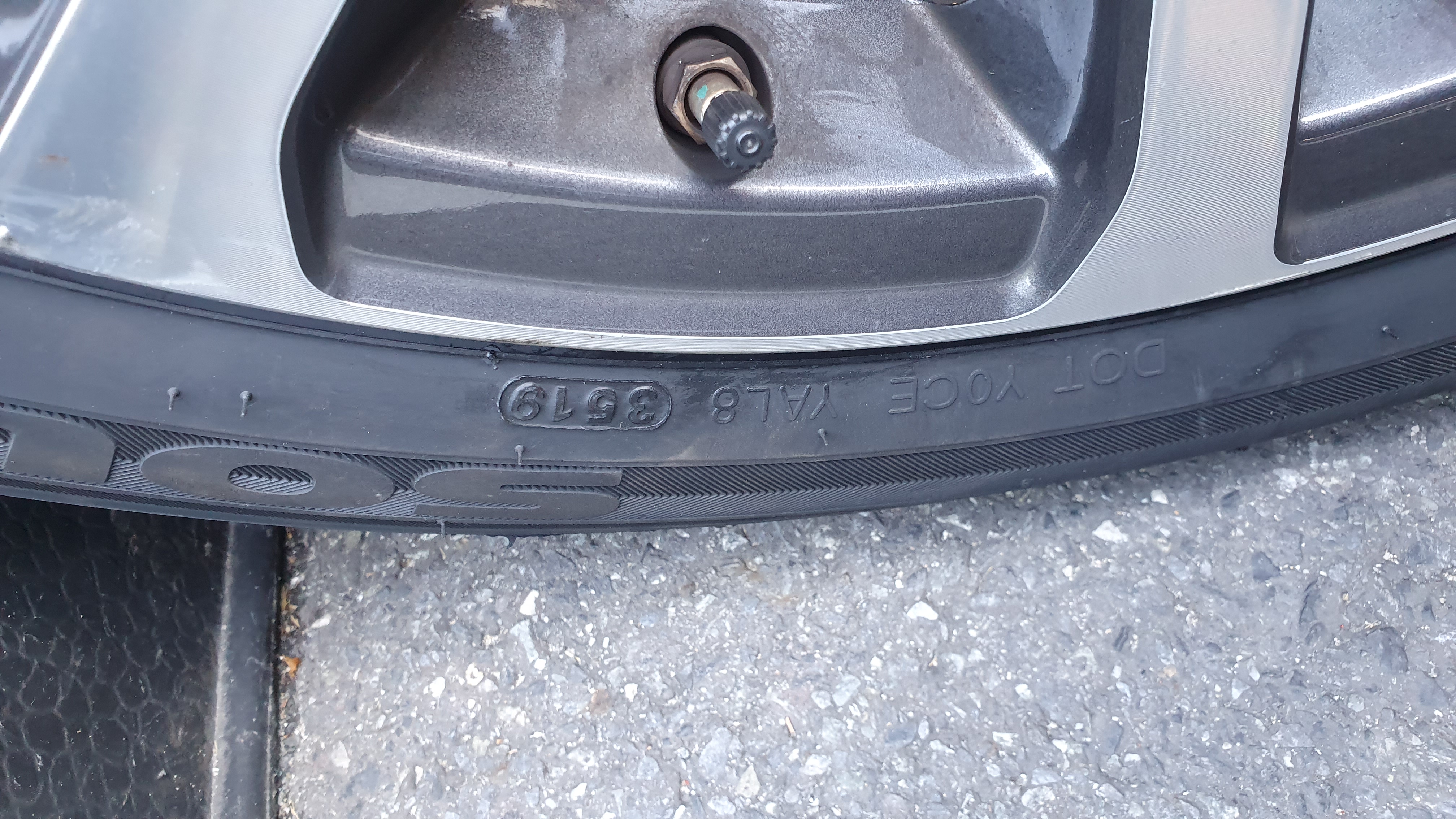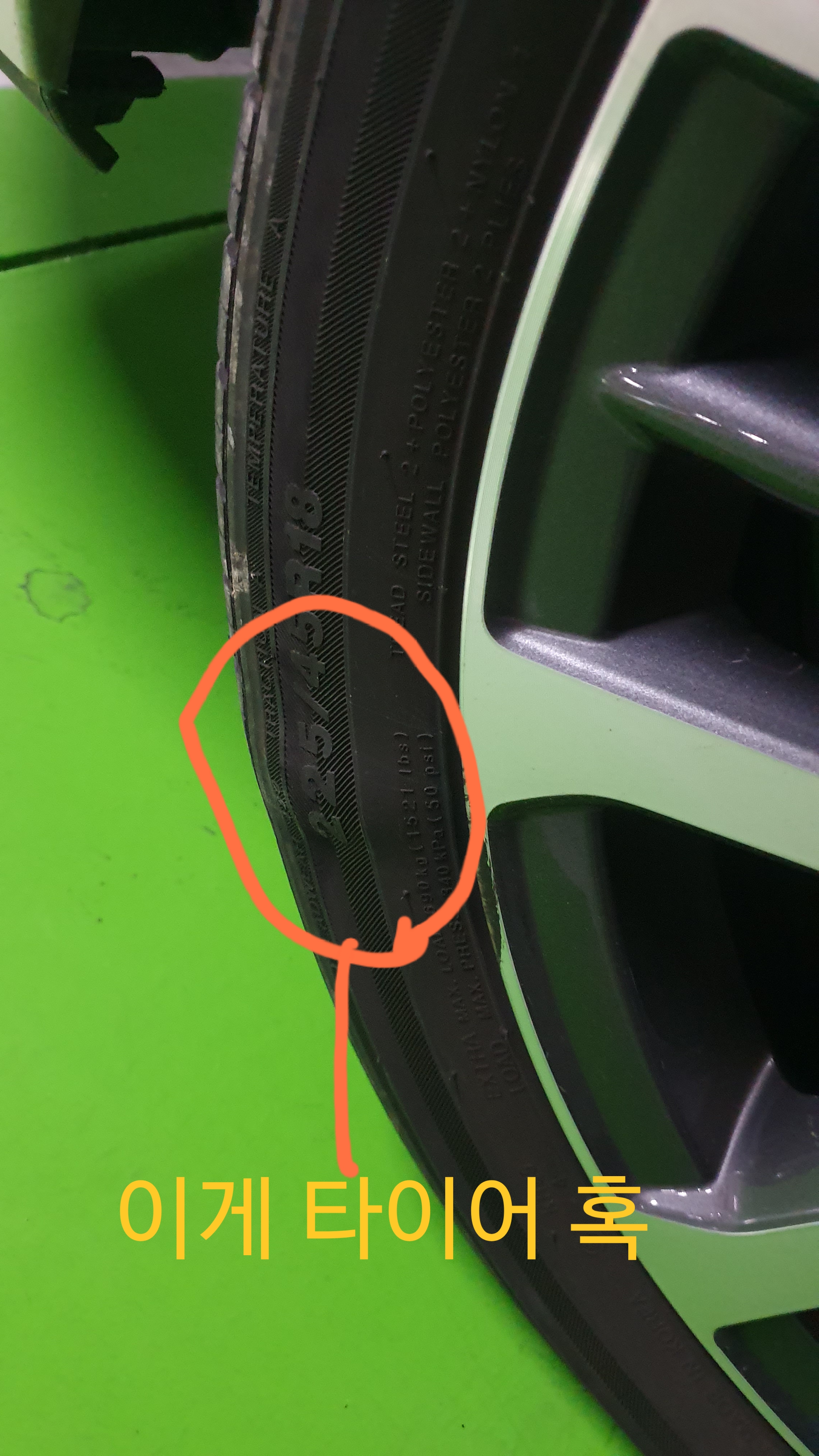 지금 차에 꽂힌 타이어는 기본형 아니 출고형 타이어 금호 kh25 225 45 18 입니다.