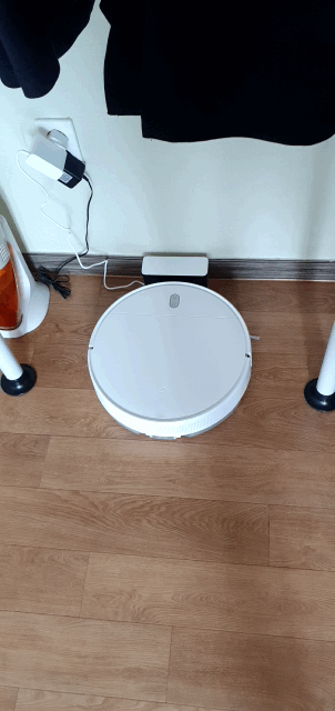 여기에다 전원 케이블을 연결하면 샤오미G1 로봇청소기가 베터리가 없으면.. 지가 자동으로 돌아와서 충전을 한다.