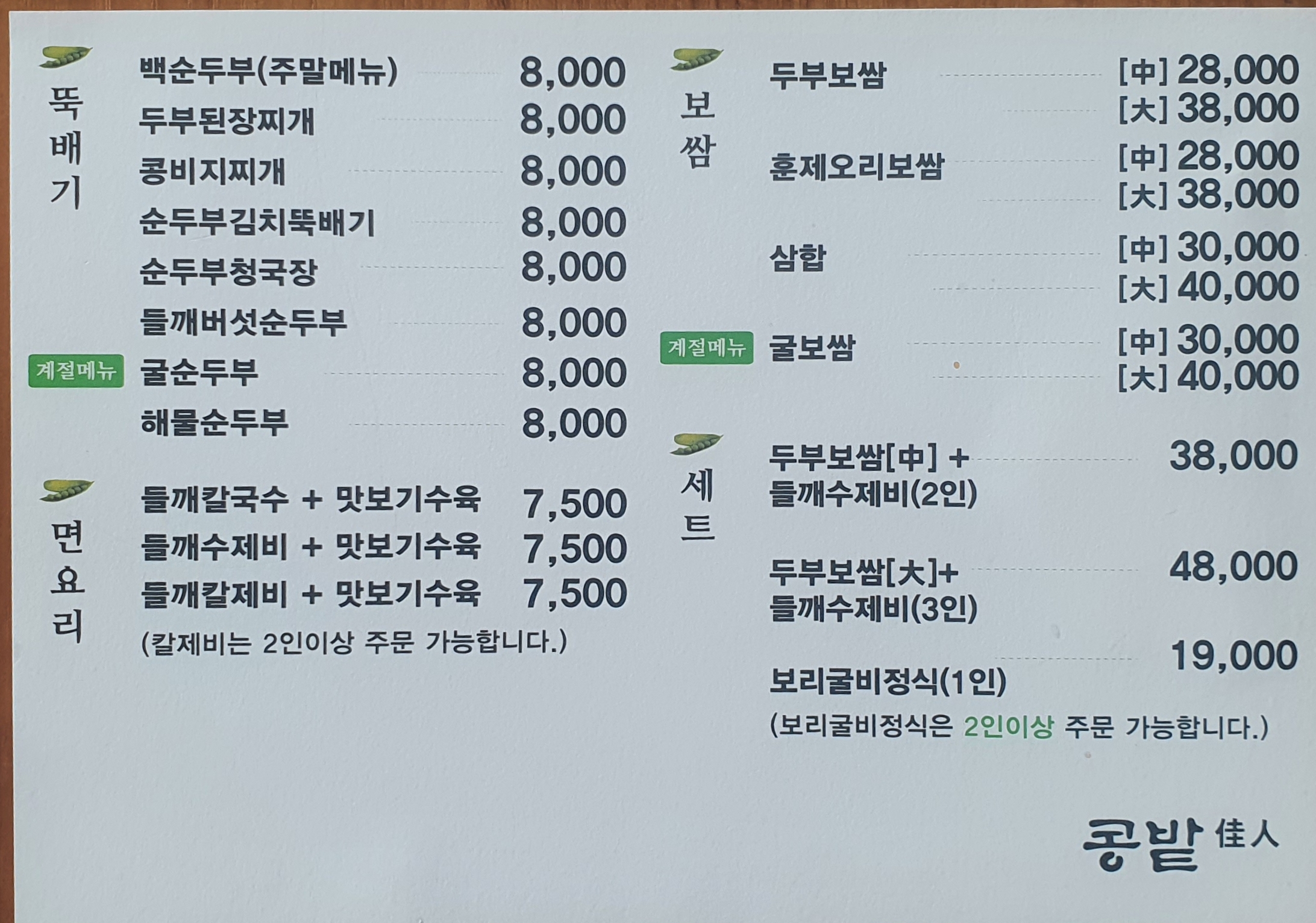 콩요리 전문점인데.. 콩이 국산이라 좋습니다.