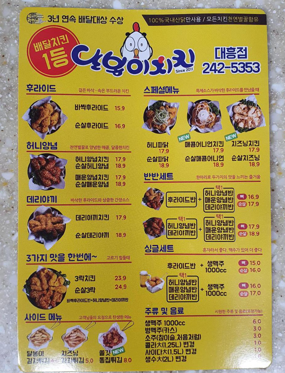 - 업체명 : 달봉이치킨 대흥점