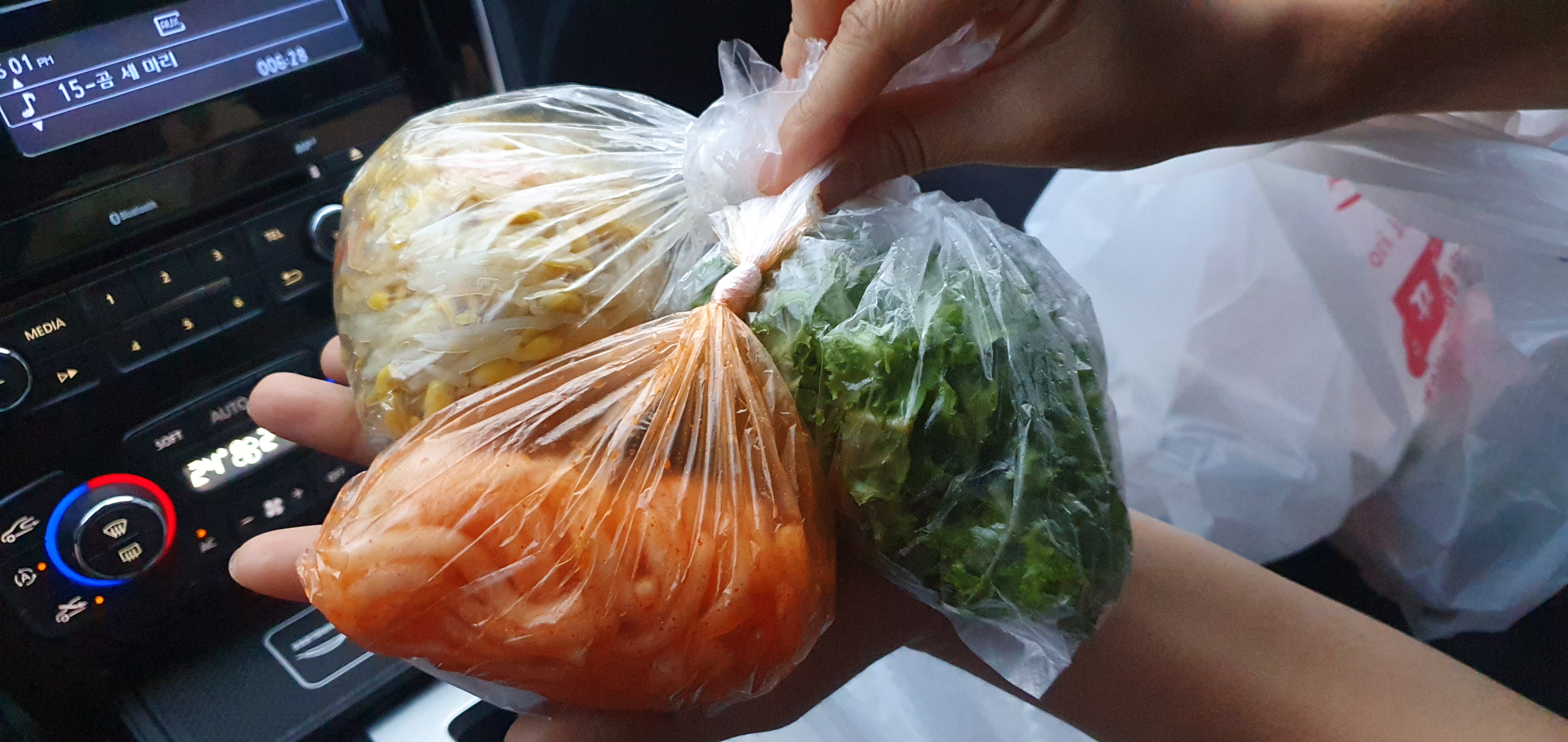 콩나물, 무절임, 상추를 추가금을 받고 있다. 3인분을 포장 주문했는데.. 저정도 양을 준다!