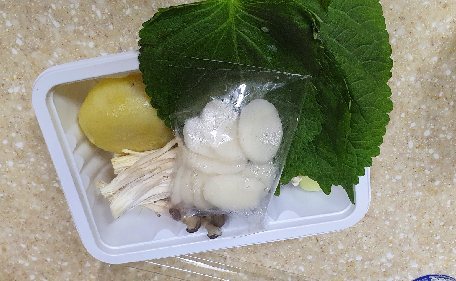 같이 들어 있는 감자는 쪄놨기 때문에..