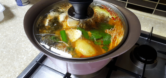 끓이다가.. 어느정도 보글보글하면, 야채를 넣고 푹~ 끓이면 끝!