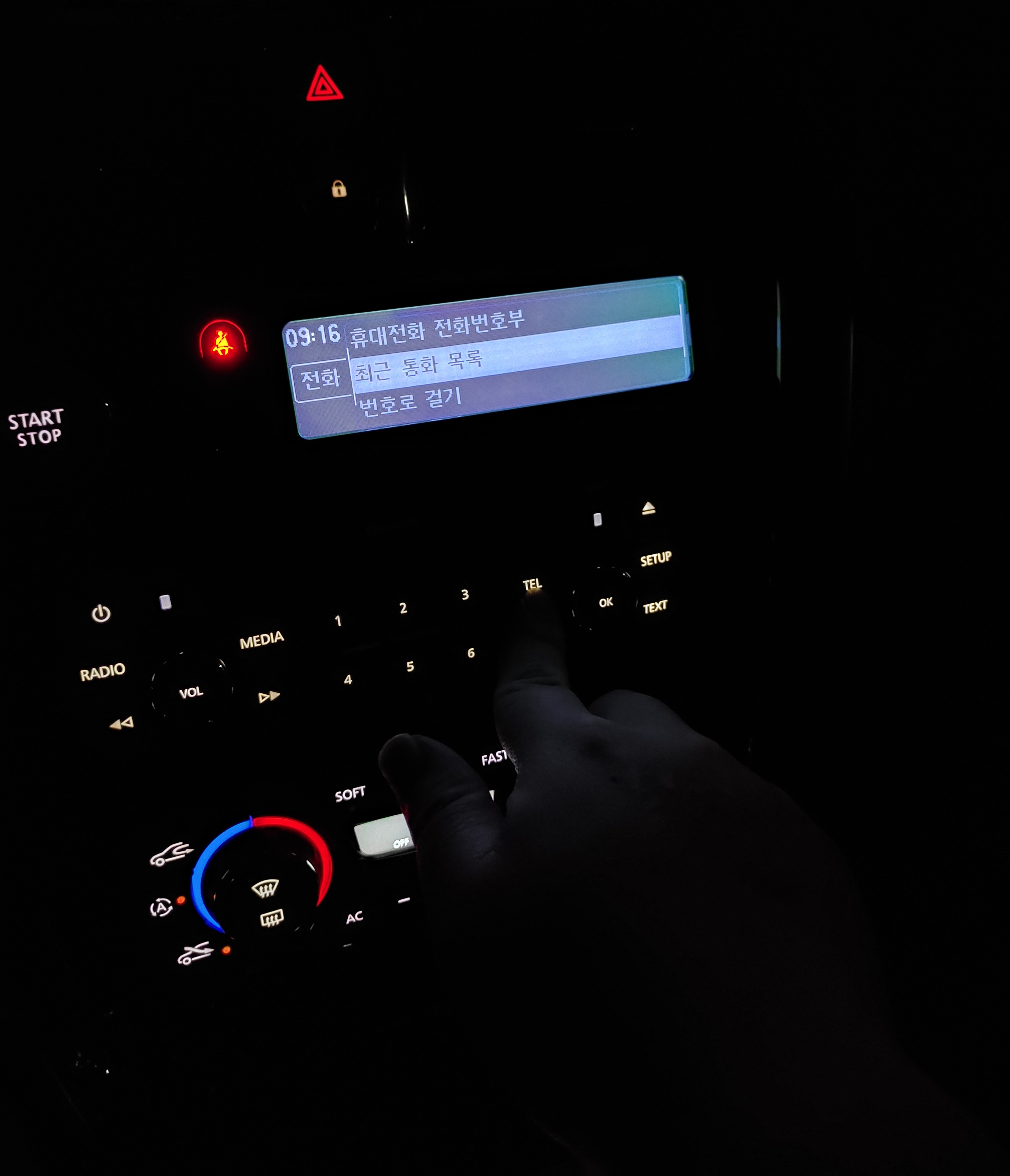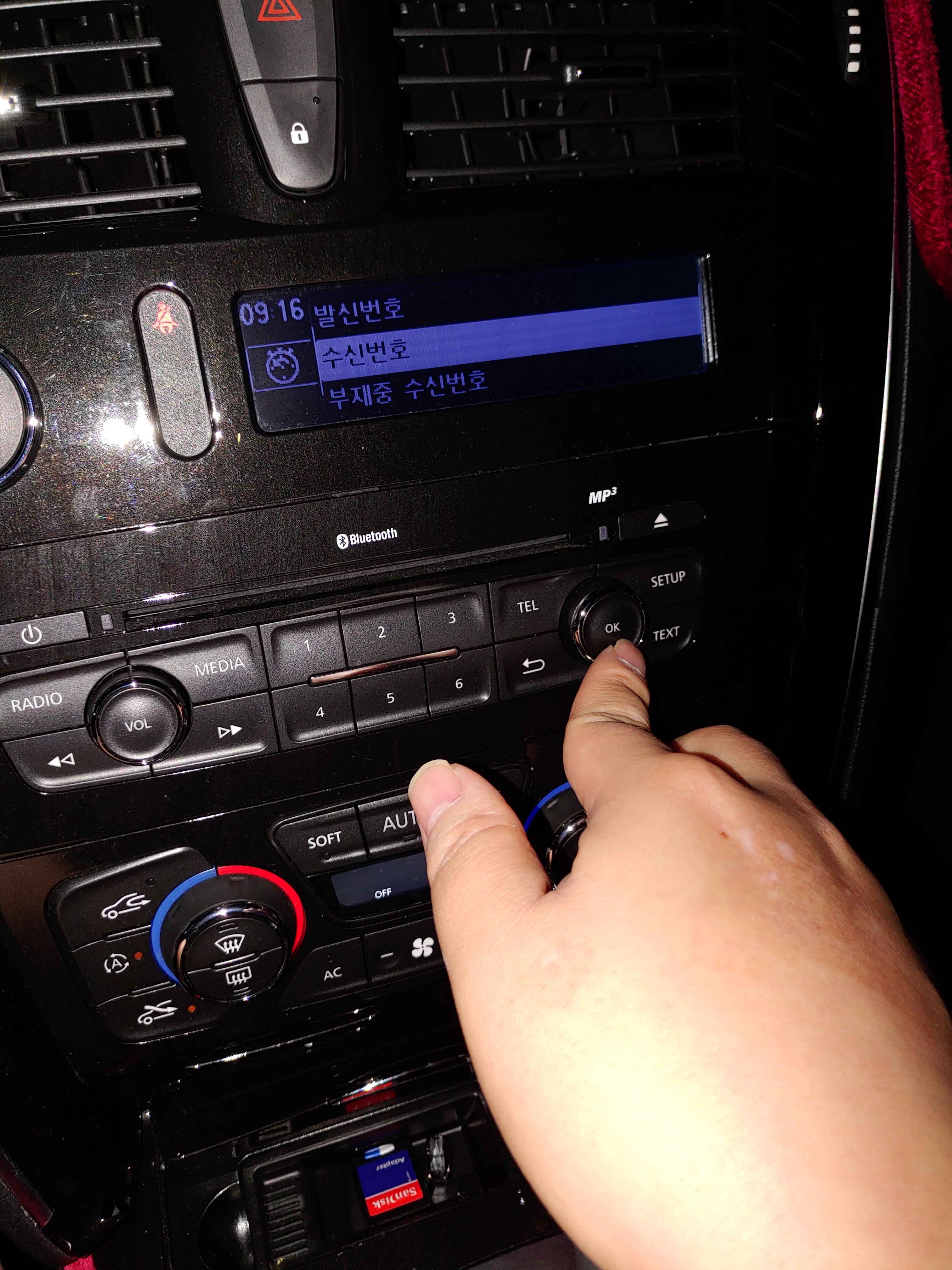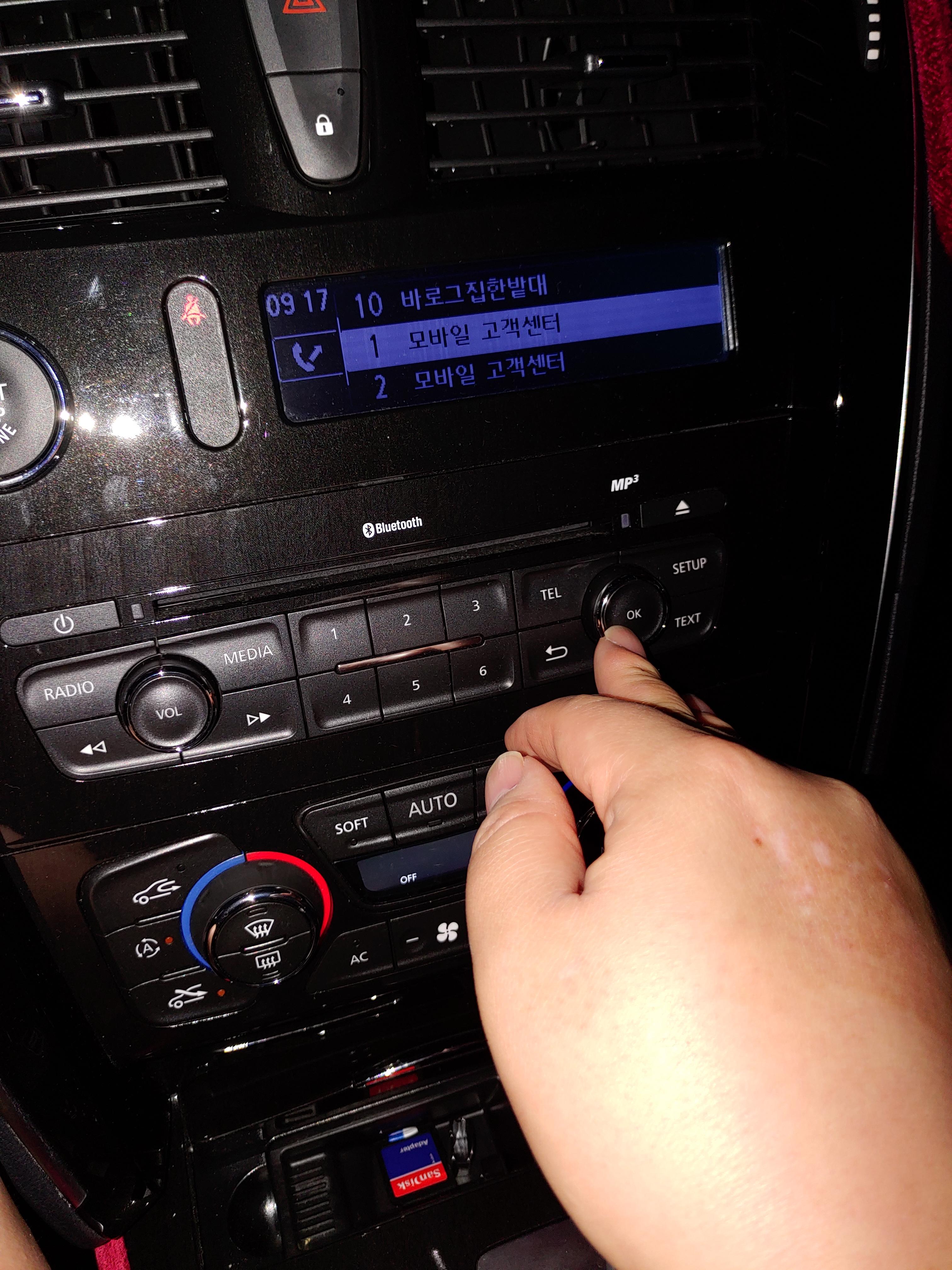 SM7 오디오 버튼중 "tel"이라는 버튼을 누르게 되면 "휴대전화 전화번호부"라는 메뉴가 뜨게 됩니다.