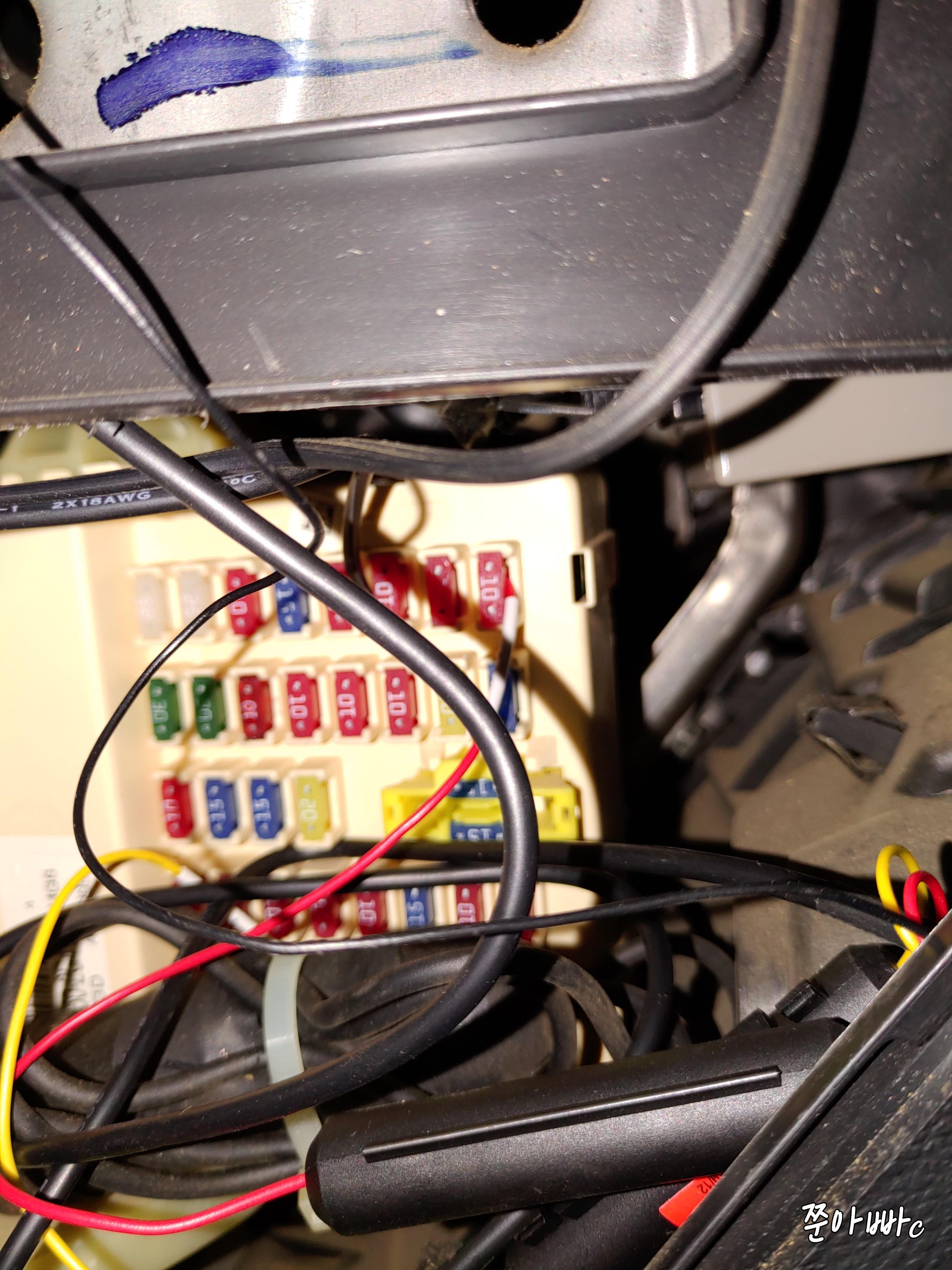 즉, 블박이 전원선을 퓨즈에 연결후 바로 블박이에 전원이 안들어오고,