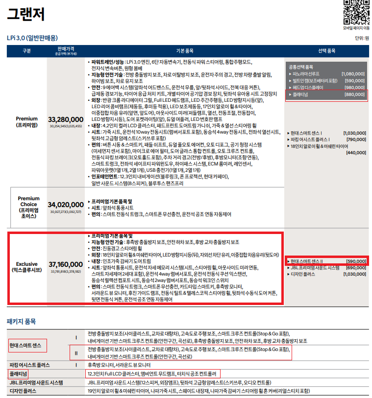 그랜져lpi 익스클루시브(3716) + 옵션 : 플래티넘(88) + 현대스마트초이스1(59)