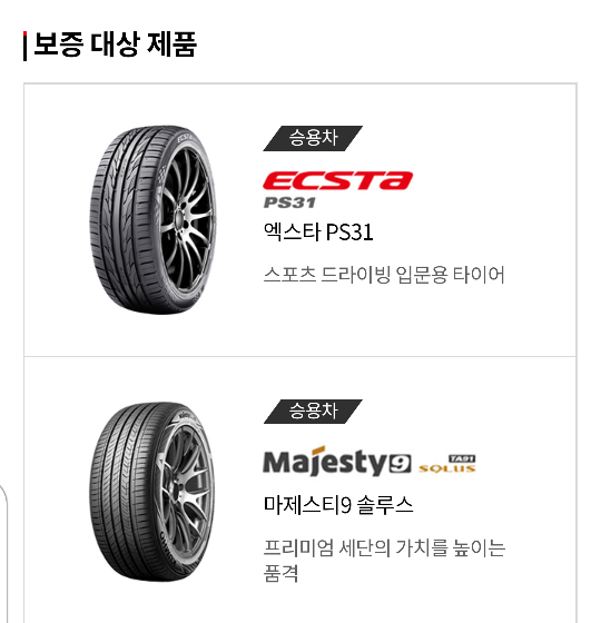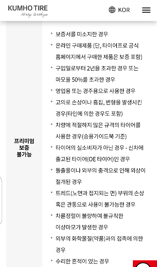 금호타이어 프리미엄 보증이 안되는 경우도 있다.