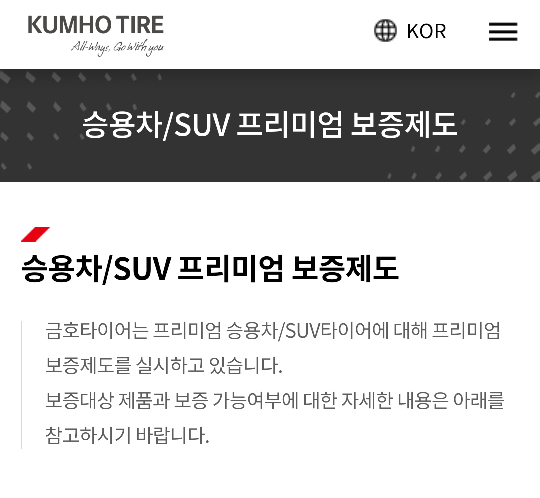이상으로 타이어 코드절상이 무료로 타이어 교체를 해주는 금호타이어의 프리미엄 보증 서비스에 관해 알아보았다.