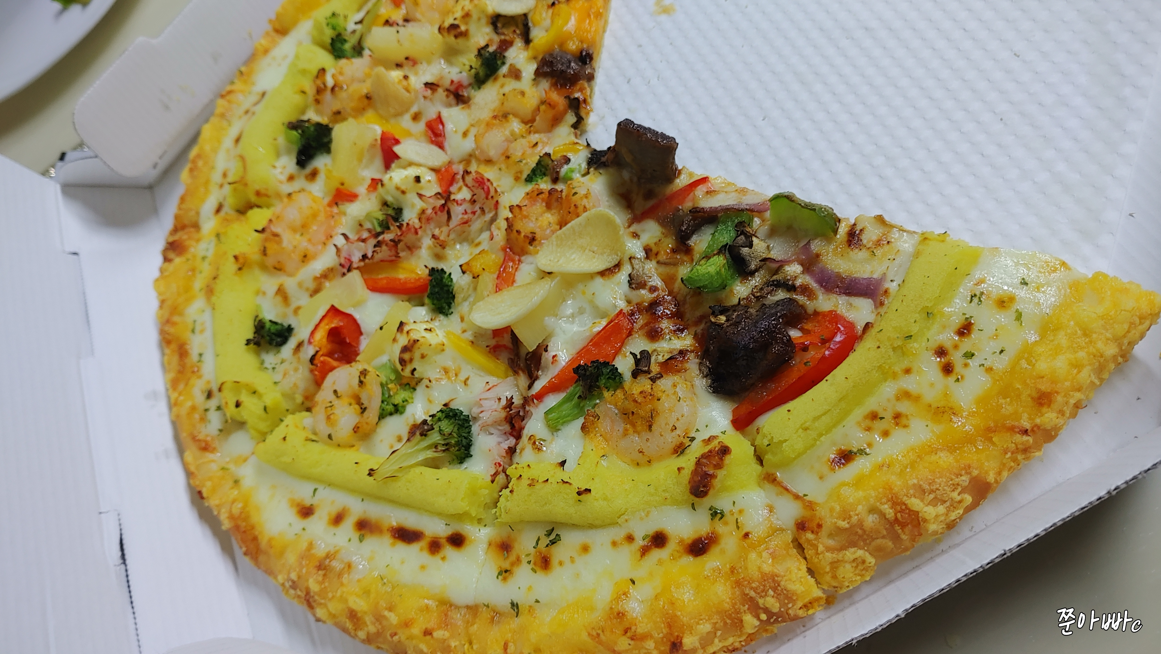 치즈크러스트처럼 피자끝 동그랗게 속안에 피자가 든 방식은 아니였으나, 치즈를 많이 넣어서 풍미가 좋았으며, 끝부분은 짭조름하면서 바삭해서 벨런스가 좋았습니다.