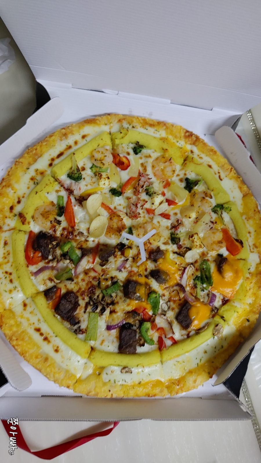 이상으로 피자헛 관저점 티본&쉬림프 피자 라지 포장 리뷰
