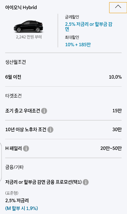 아이오닉 하브 역시 할인율이 10%이기 때문에.. 하브차량을 구매 하실 분들은 참고하시길 바랍니다.