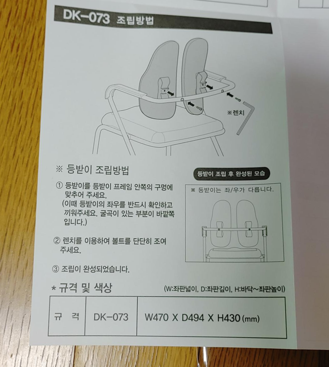 자 그럼 듀오백 DK073 등받이 조립을 해보겠습니다!