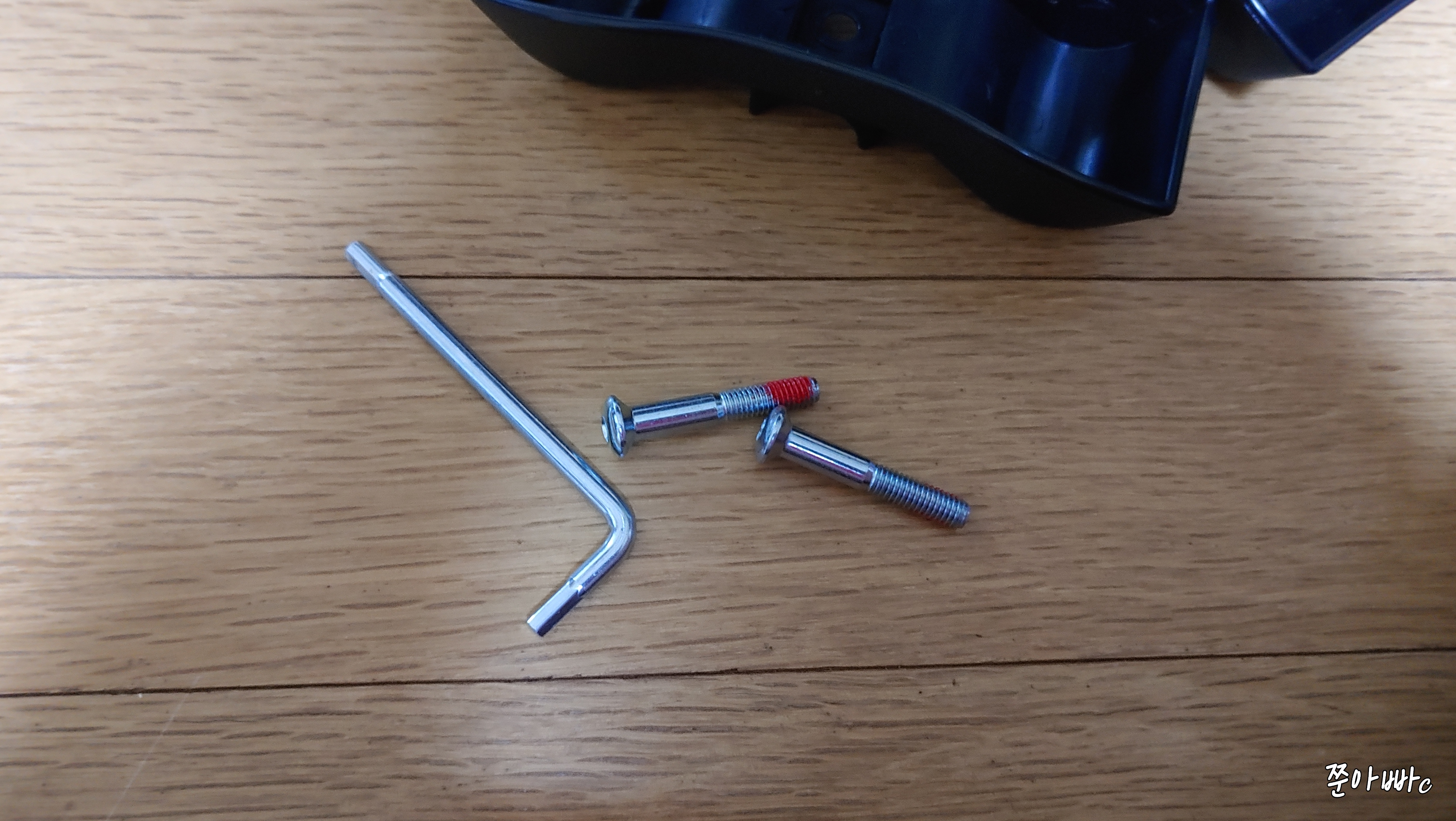 2개의 볼트와 육각렌치가 하나 들어 있습니다.