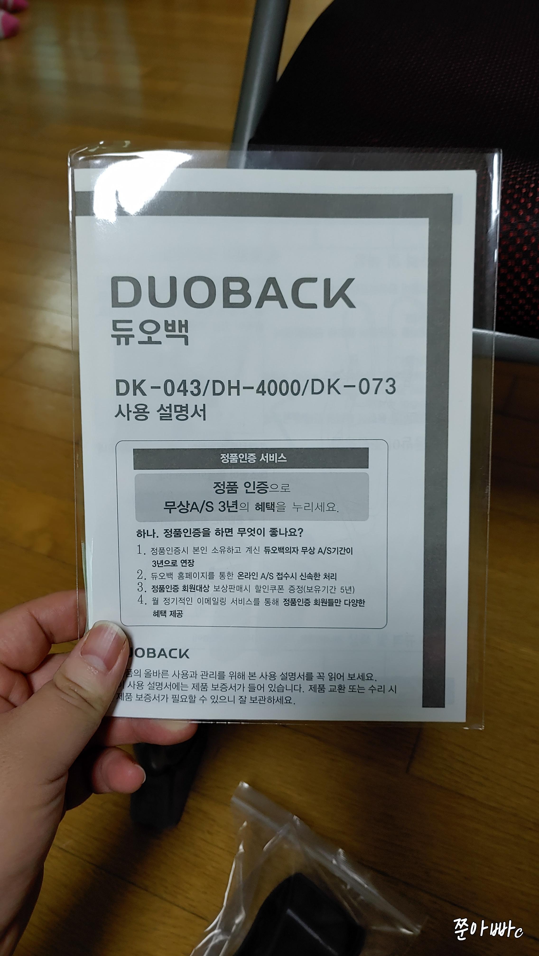 메뉴얼도 들어 있는데, 정품등록을 하면 3년동안 AS를 해준다고 하니, 듀오백 홈페이지 방문하셔서 등록하시길 바랍니다.
