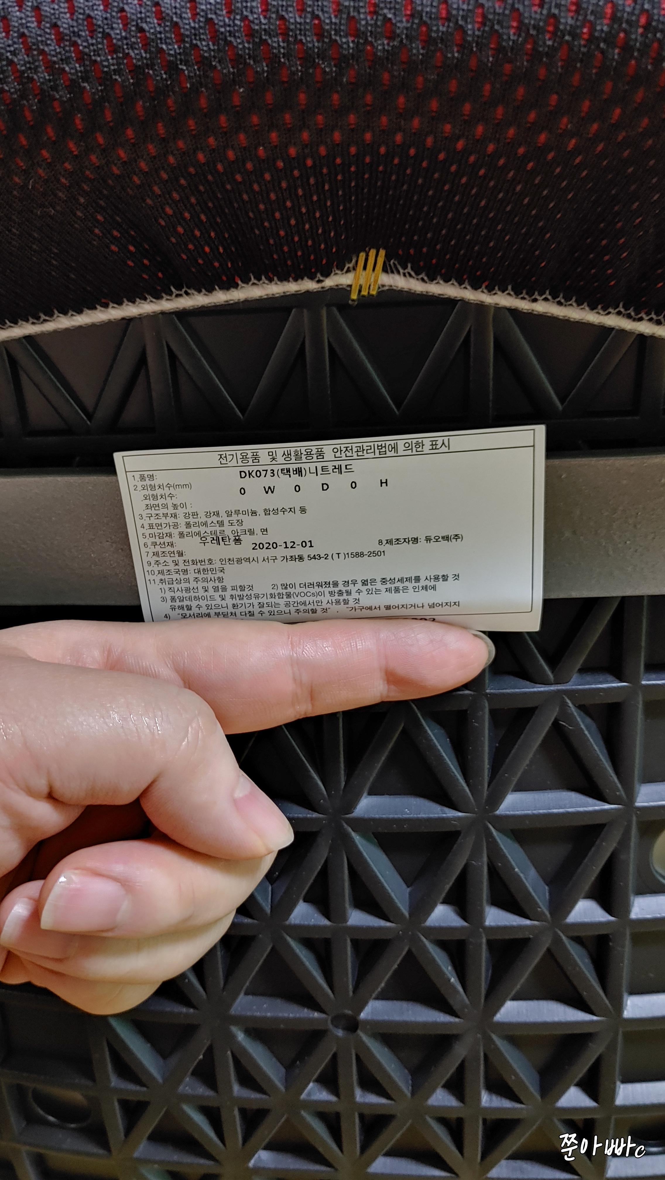 의자의 바닥부분을 보면 여기에 제가 손가락으로 가린부분에 BL로 시작하는 등록번호가 있습니다.