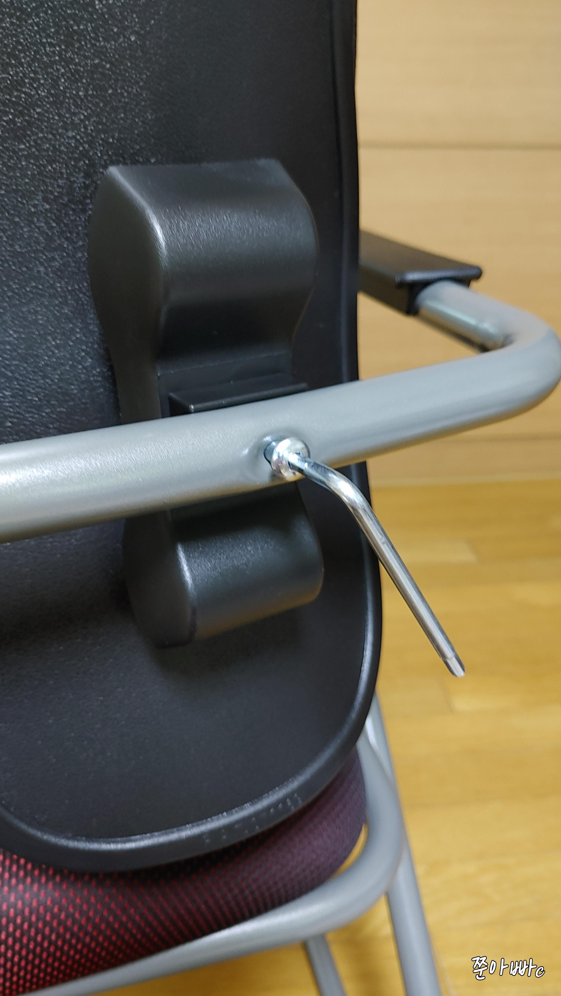 등받이 부품인 등받이와 철재 바디 사이에 와셔? 처럼 끼우는 플라스틱 가이드가 있고,