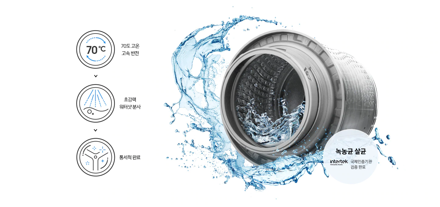 세탁문있는쪽과 그 고무패킹쪽까지 세척이된다는 장점이있고,