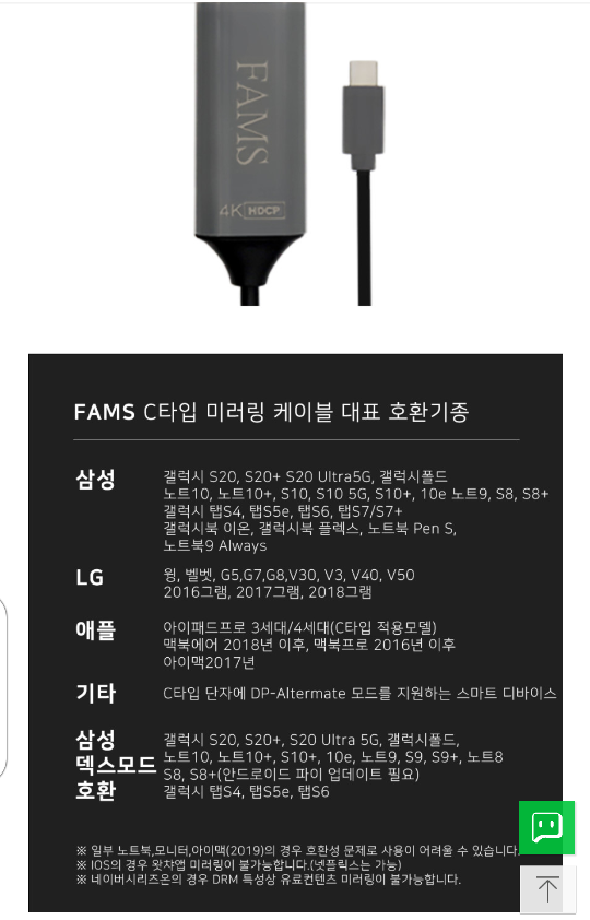 제품명은 팜즈 미러링 유선케이블입니다.