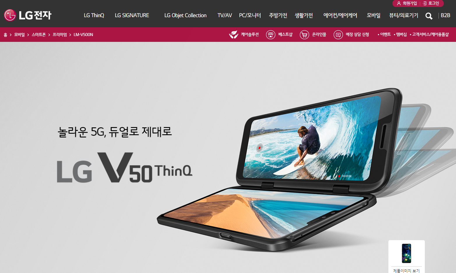 나온지 얼마 되지도 않은 스마트폰 lg v50
